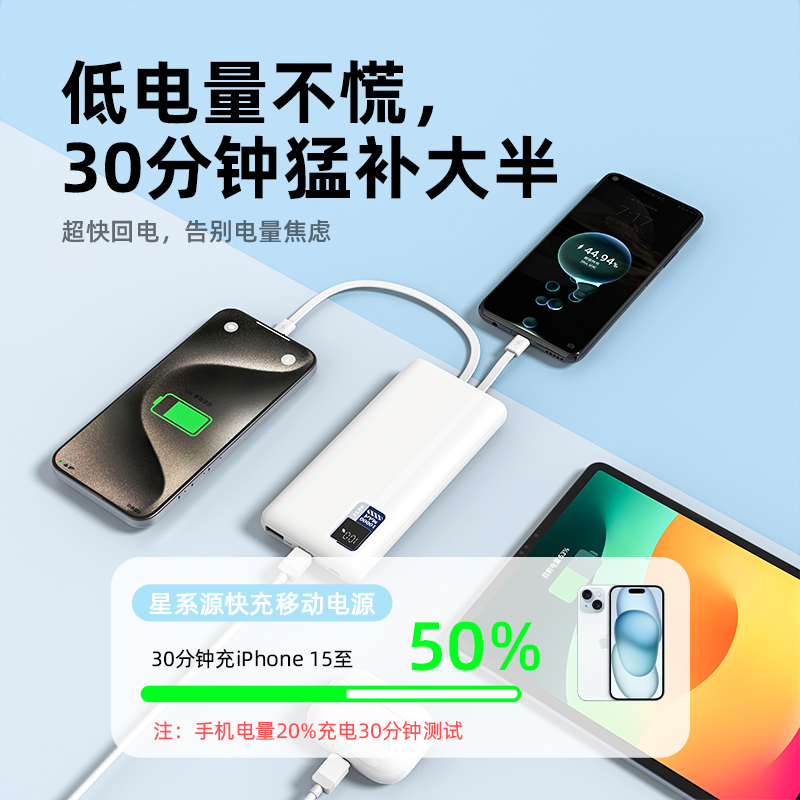 星系源新国标3C认证可登机自带线22.5W快充充电宝10000/20000mahPD快充移动电源适用华为苹果iPhone17/16/15