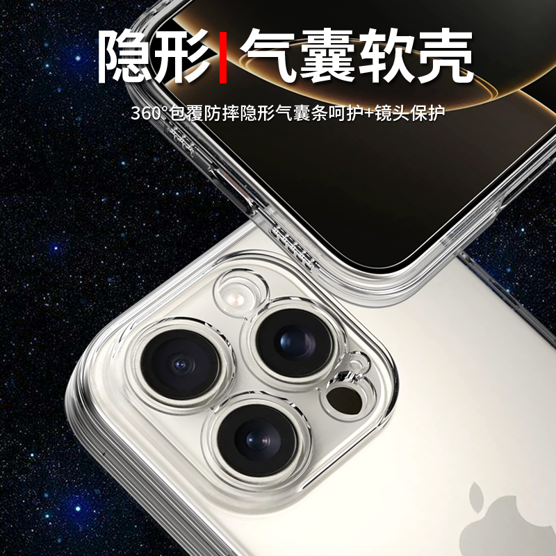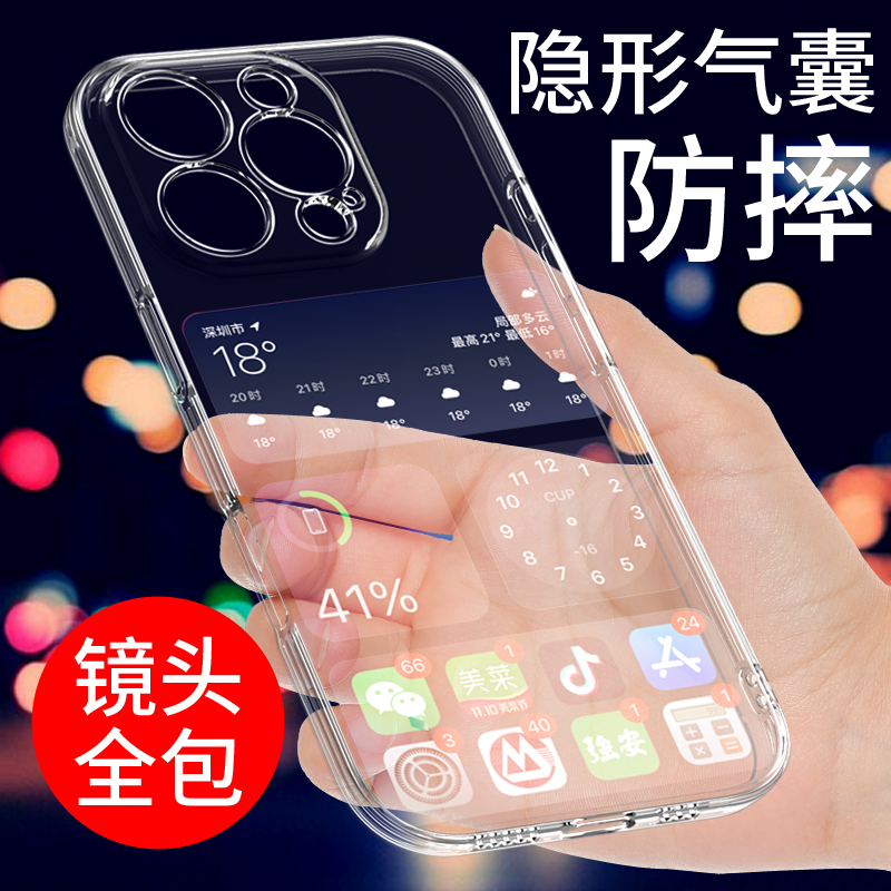 沃享适用于iPhone16手机壳苹果15pro保护套14plus气囊13promax透明12mini苹果11软XR防摔XSmax全包边硅胶男女