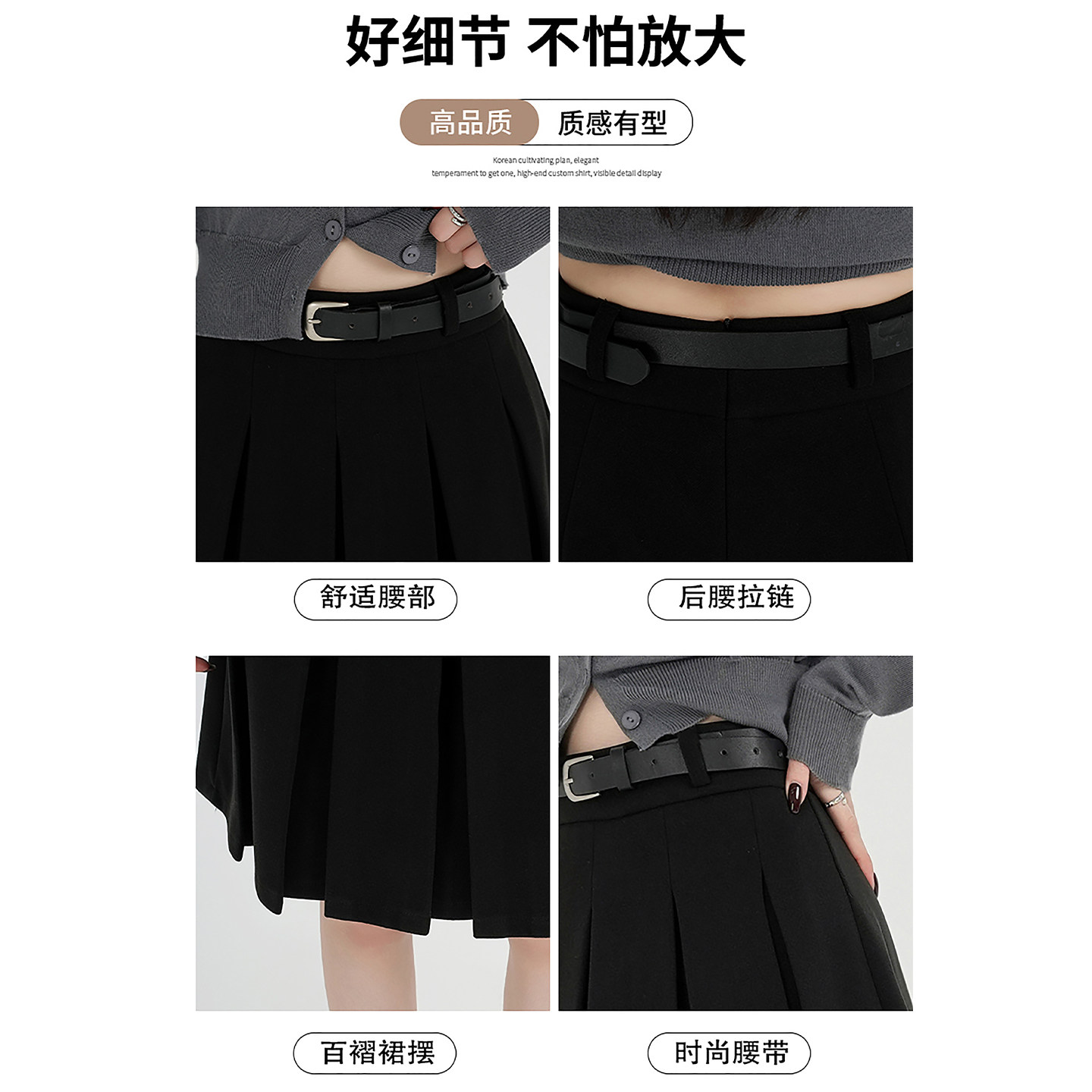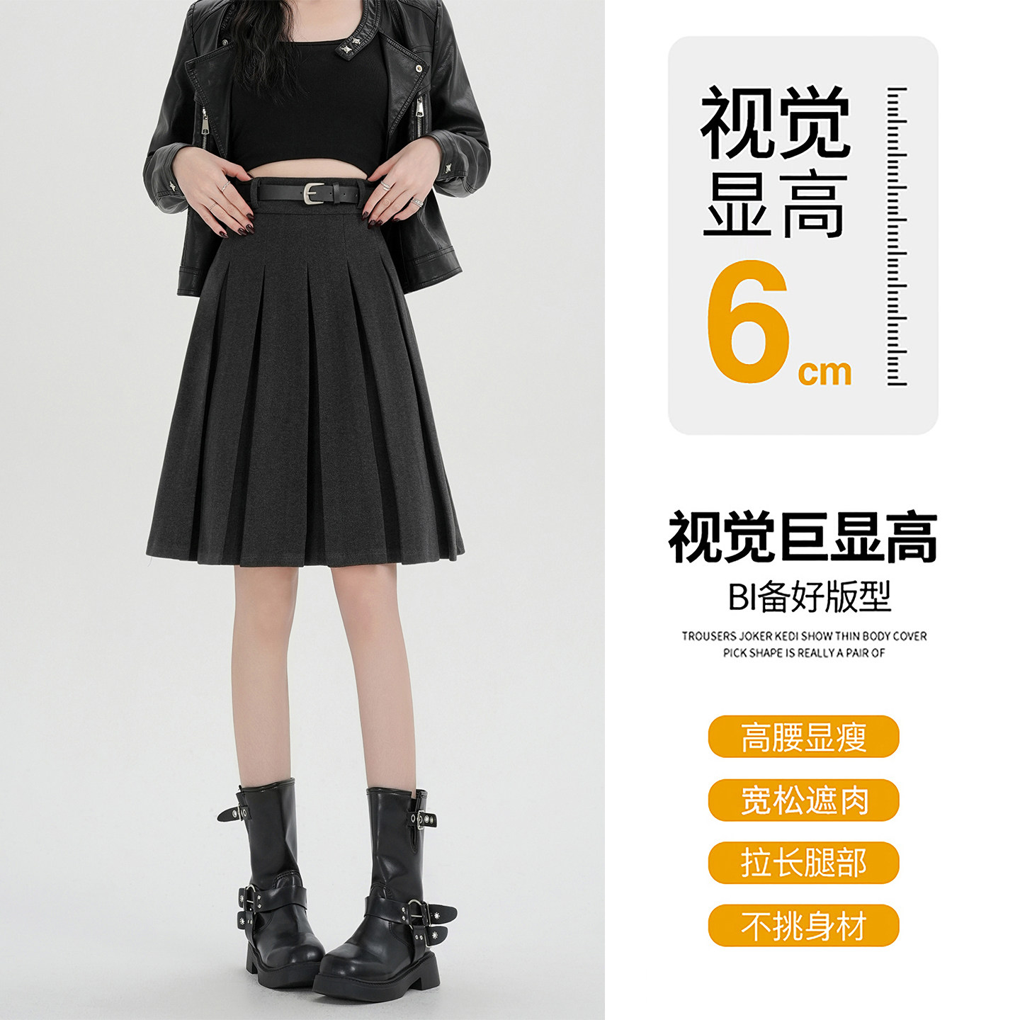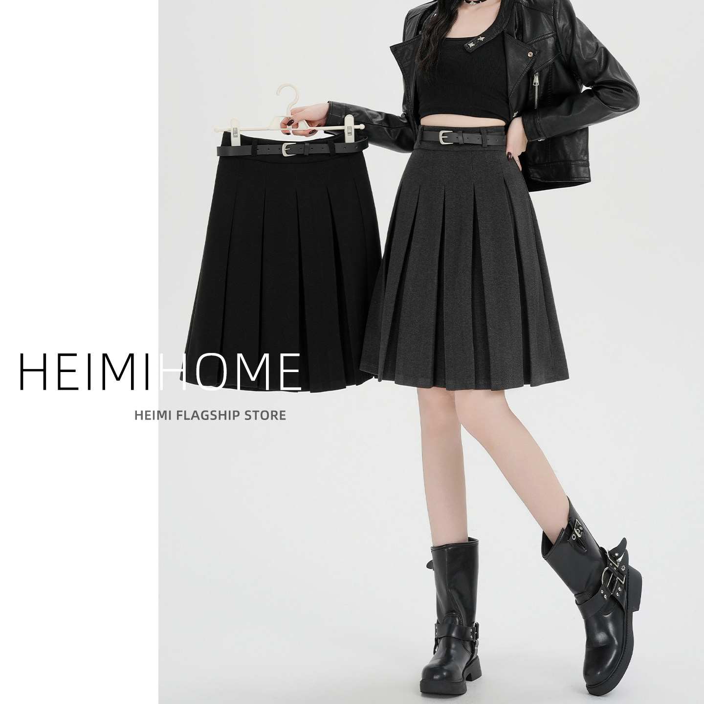 学院风黑色毛呢百褶中裙