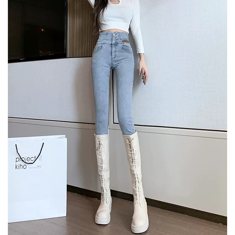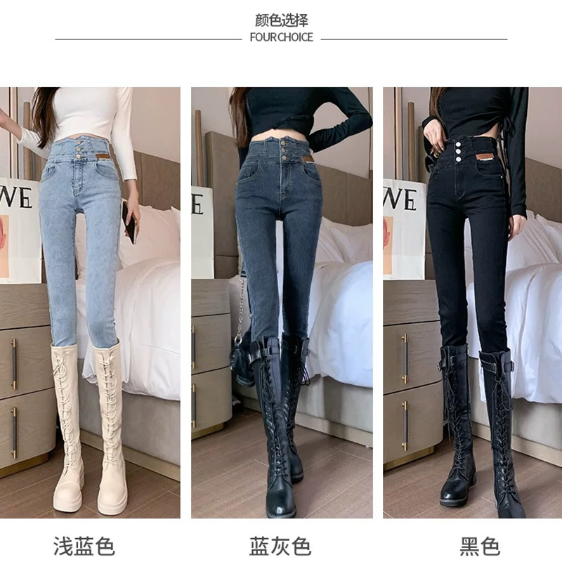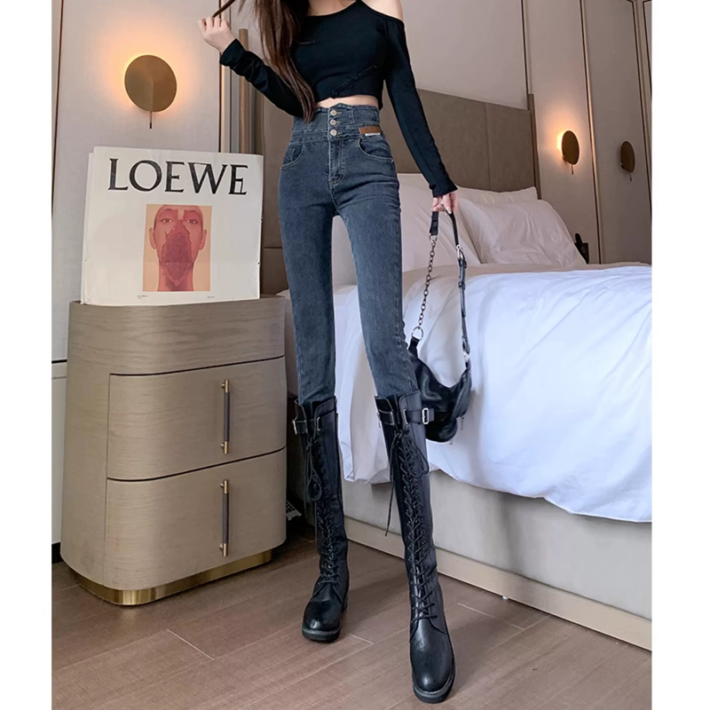 浅色牛仔裤女秋冬秋季2025年新款高腰修身显瘦紧身铅笔小脚裤子女
