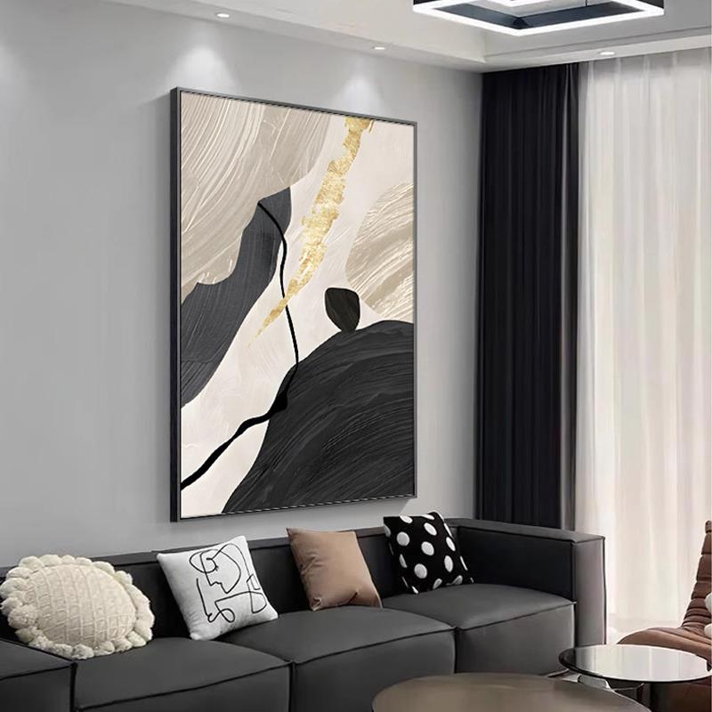 黑白灰客厅现代简约装饰画沙发背景墙落地画抽象大气入户玄关挂画