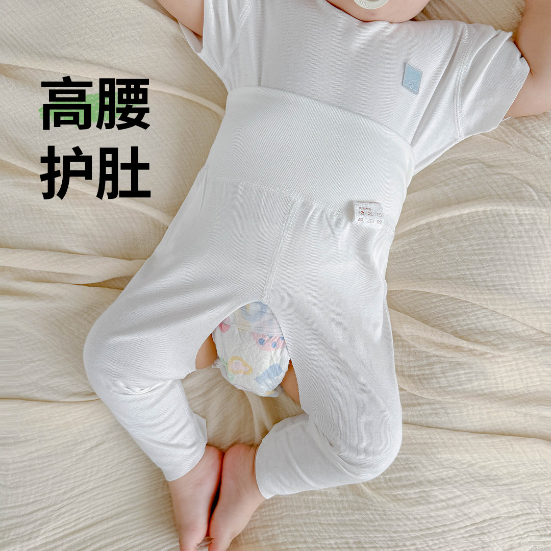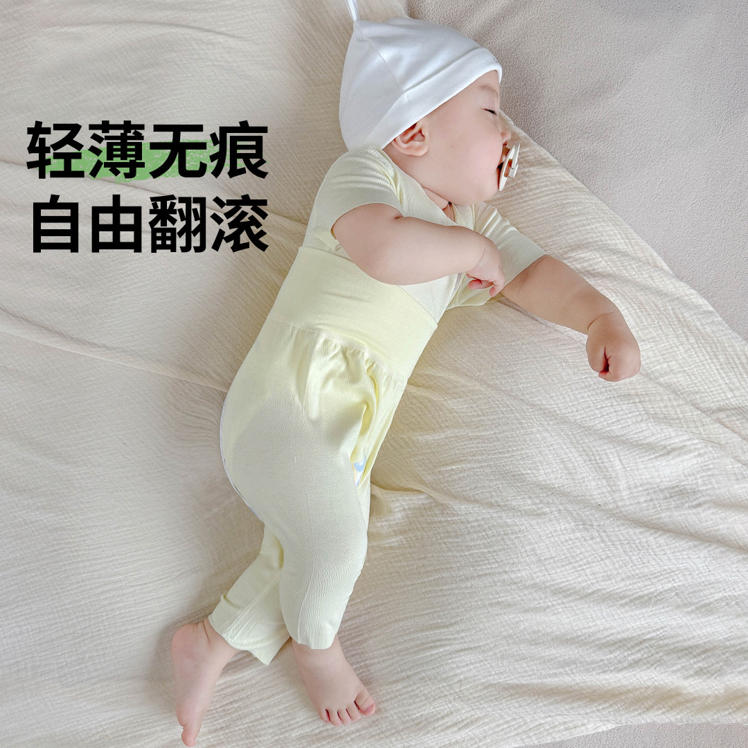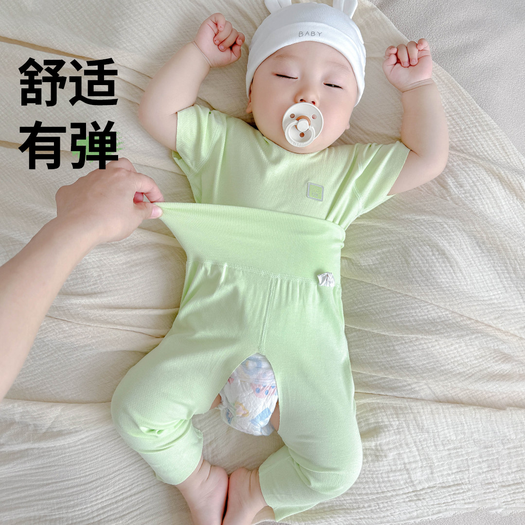 婴儿套装分体开档护肚夏季薄款小月龄开裆男女宝宝短袖长裤