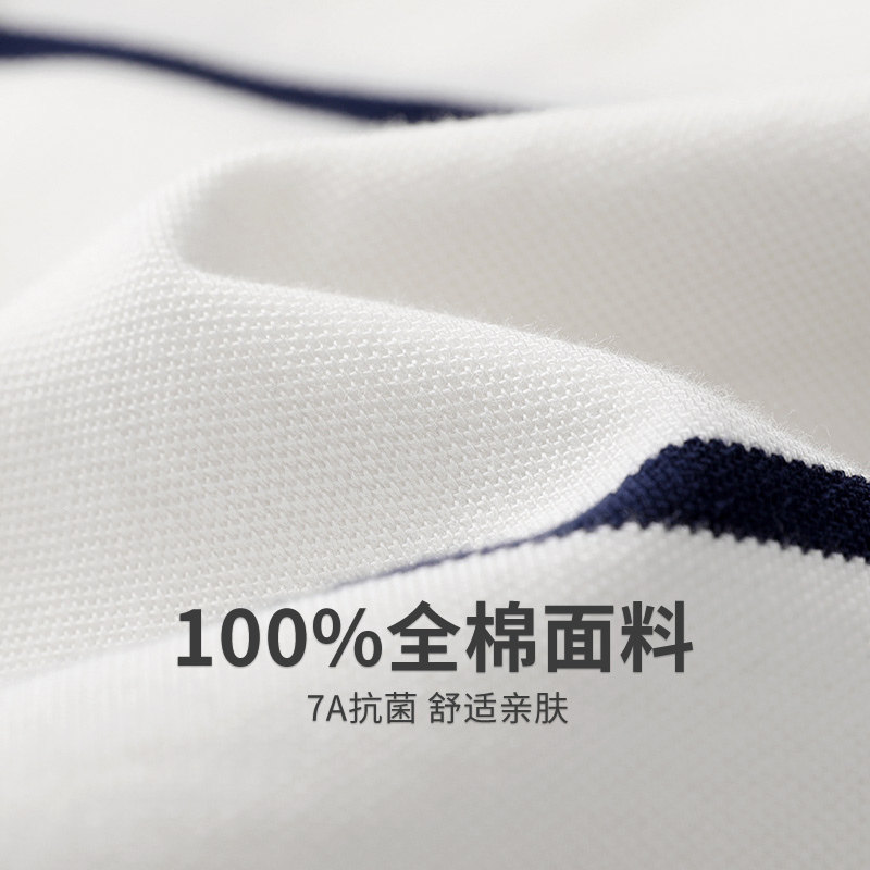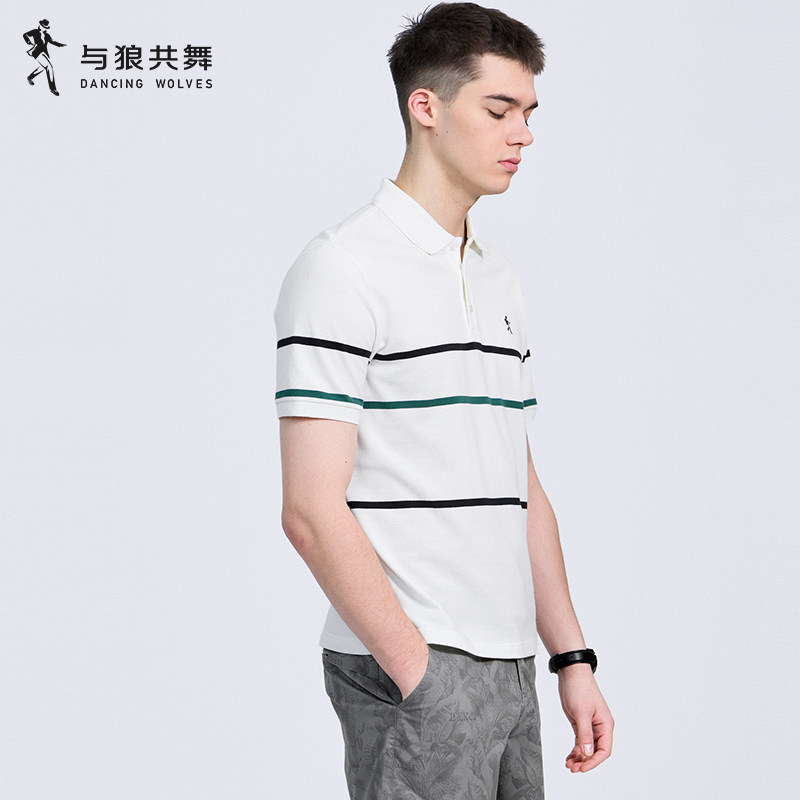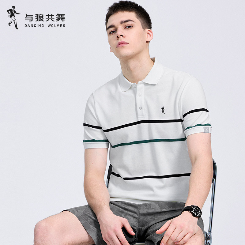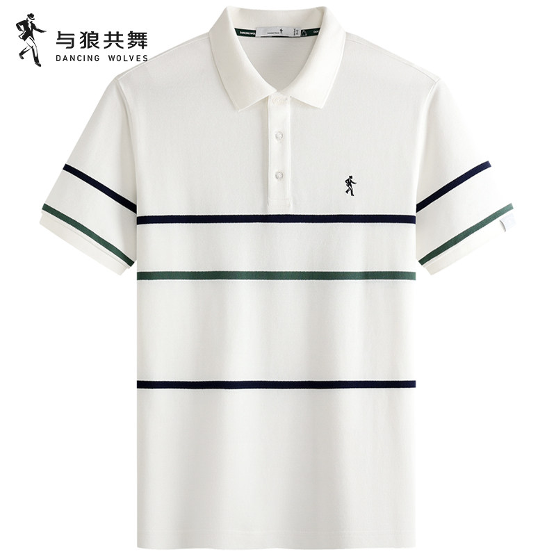 【纯棉】与狼共舞抗菌翻领短袖T恤男2025夏季新款撞色条纹POLO衫