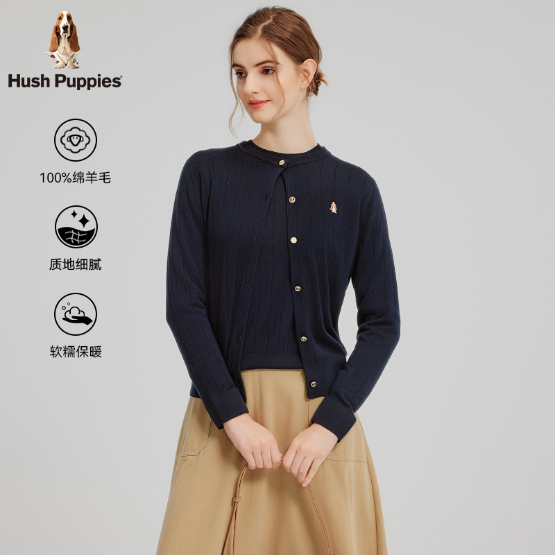 【品质绵羊毛】暇步士女装秋季轻薄休闲线衣保暖长袖圆领针织开衫
