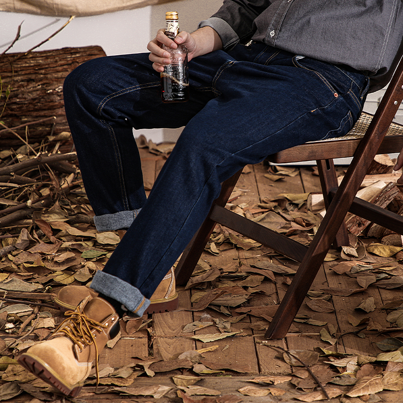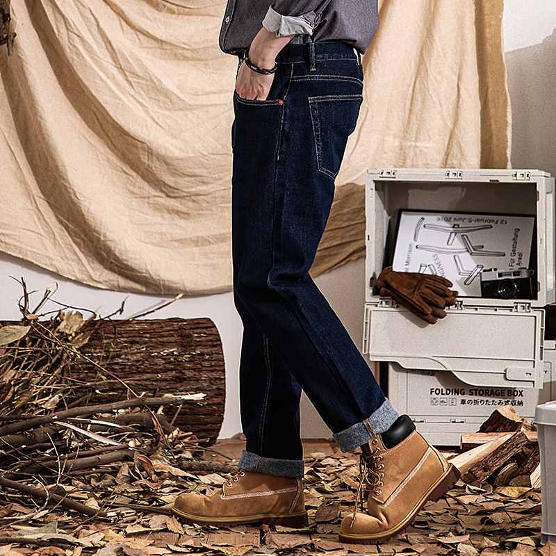 火山岩加绒冬季深蓝色牛仔裤