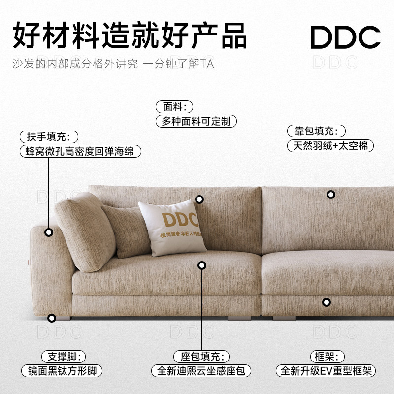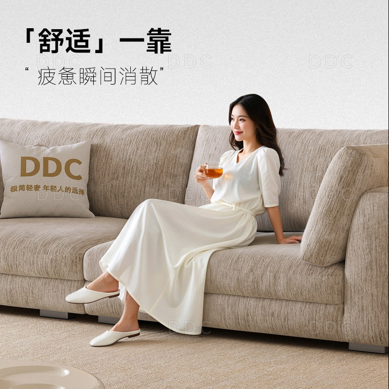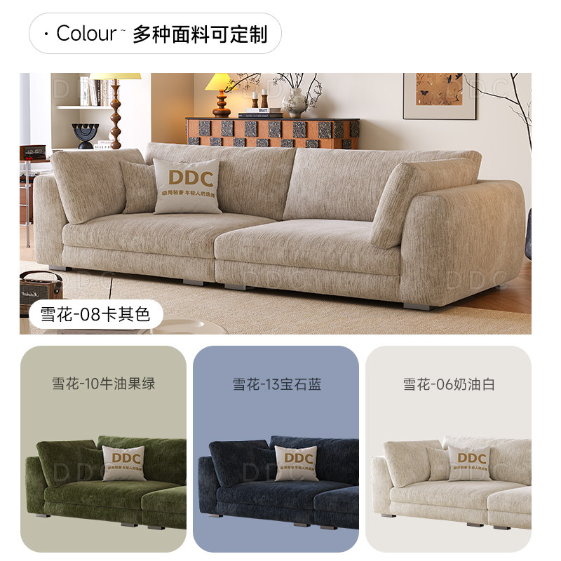 DDC雪尼尔绒莱茵云朵直排沙发小户型客厅侘寂奶油风羽绒布艺沙发