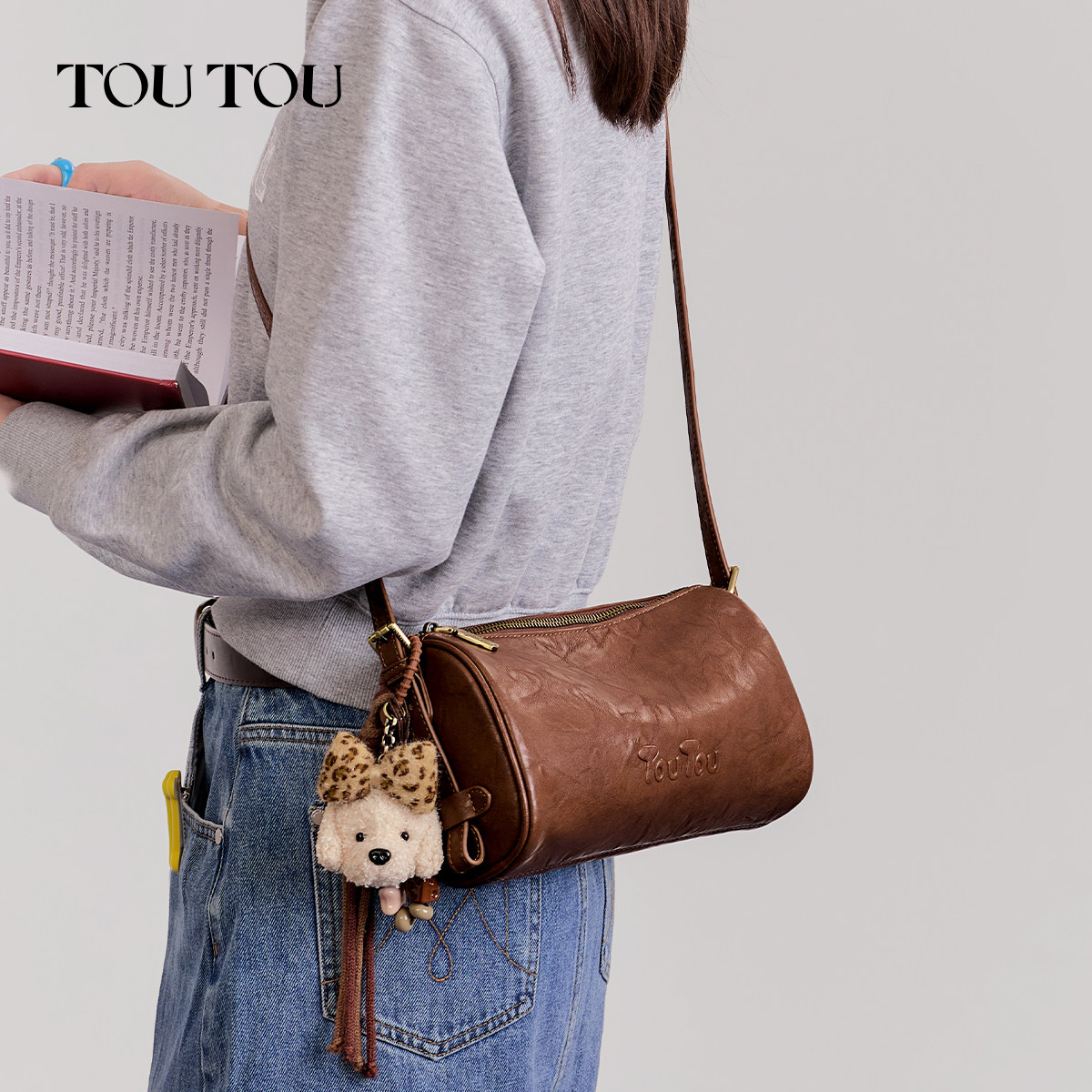 TOUTOU小狗圆筒包手提单肩斜挎包