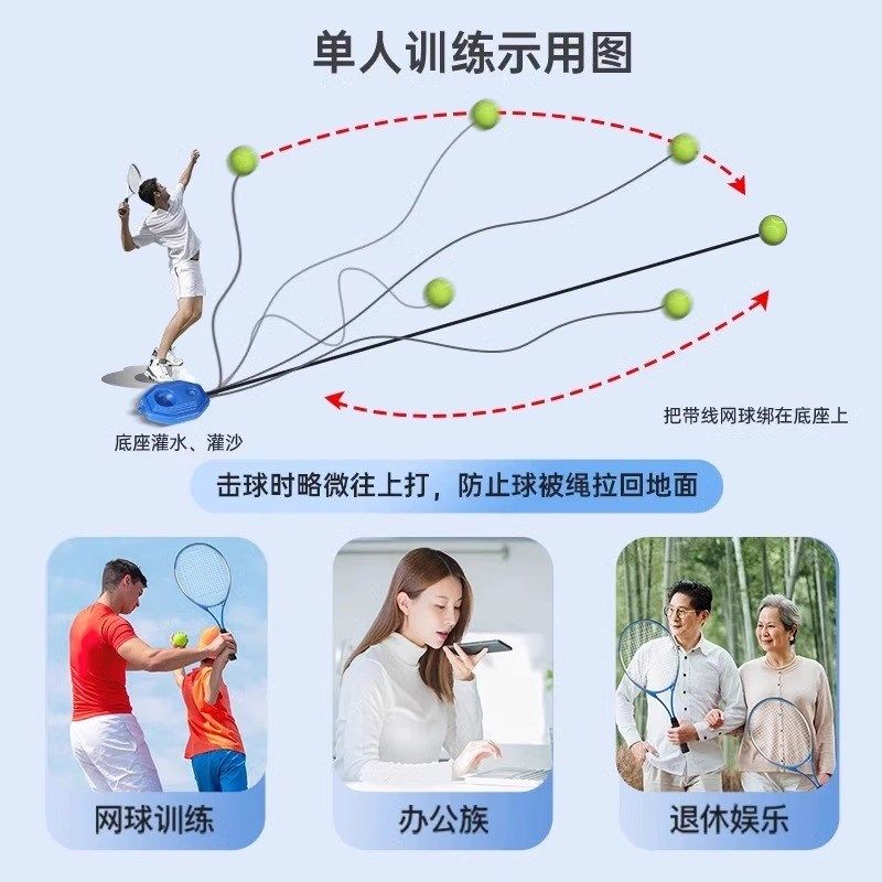 网球训练器自动回弹带线网球拍单人自练器成人健身器材可固定底座