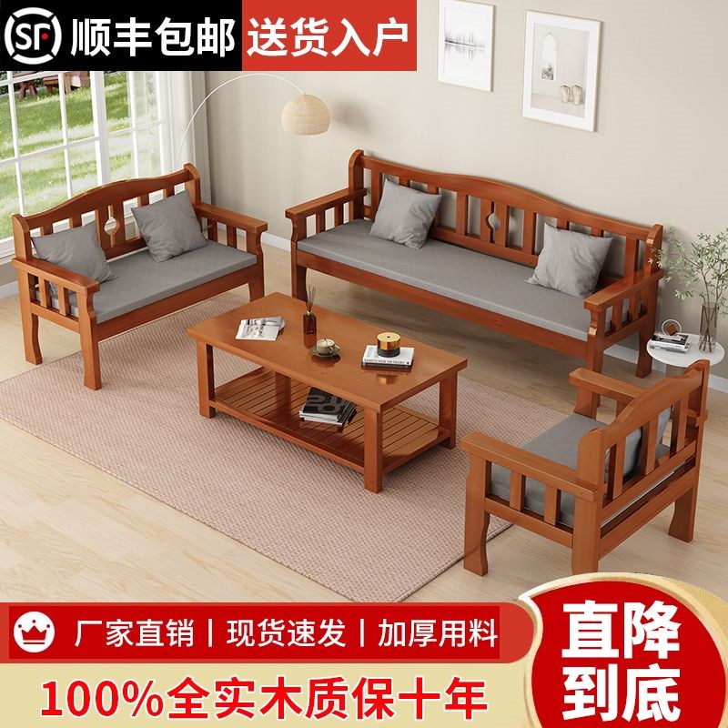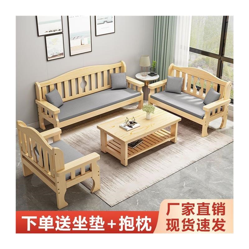 全实木沙发椅茶几组合家用小户型卧室客厅阳台现代简约三人木沙发