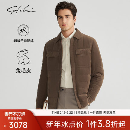 [可拆卸兔毛内胆]SATCHI沙驰男装男士羽绒服冬季新款鹅绒保暖外套