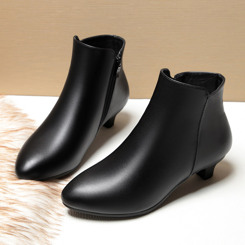 秋冬季真皮软底女士棉皮鞋妈妈鞋棉鞋短靴小中跟单鞋工作鞋单靴子