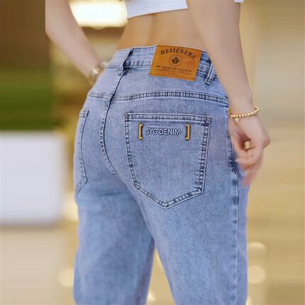 九分牛仔裤男士2024夏季新款修身小脚休闲潮流印花9分小直筒薄款