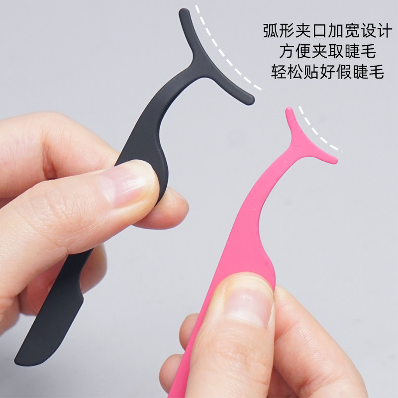 假睫毛镊子弧形整簇睫毛辅助神器弯头加宽化妆师嫁接美睫佩戴神器