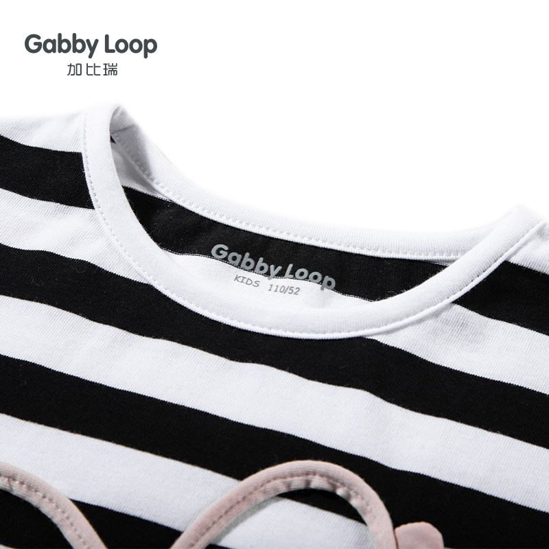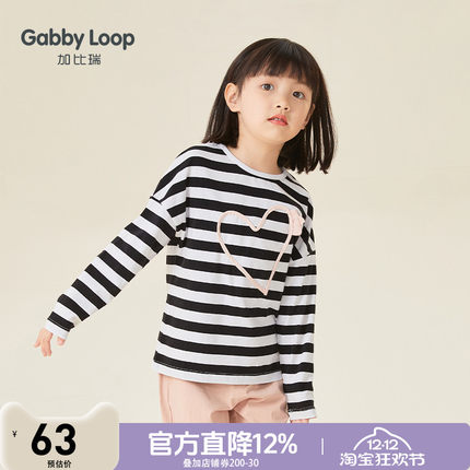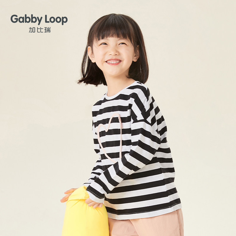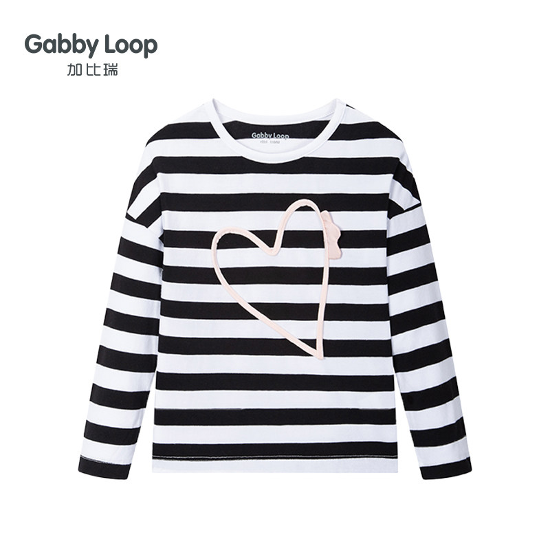 2022女童t恤长袖儿童打底衫春秋中大童春装上衣爱心黑白条纹体恤