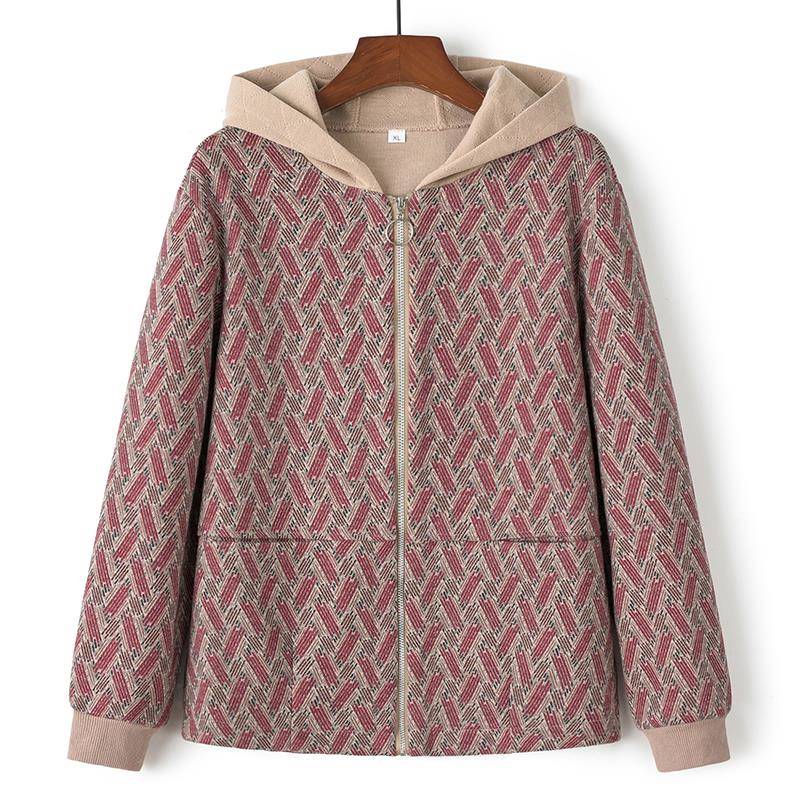 中年妈妈春装外套洋气2024新款中老年女装春秋季休闲连帽上衣短款