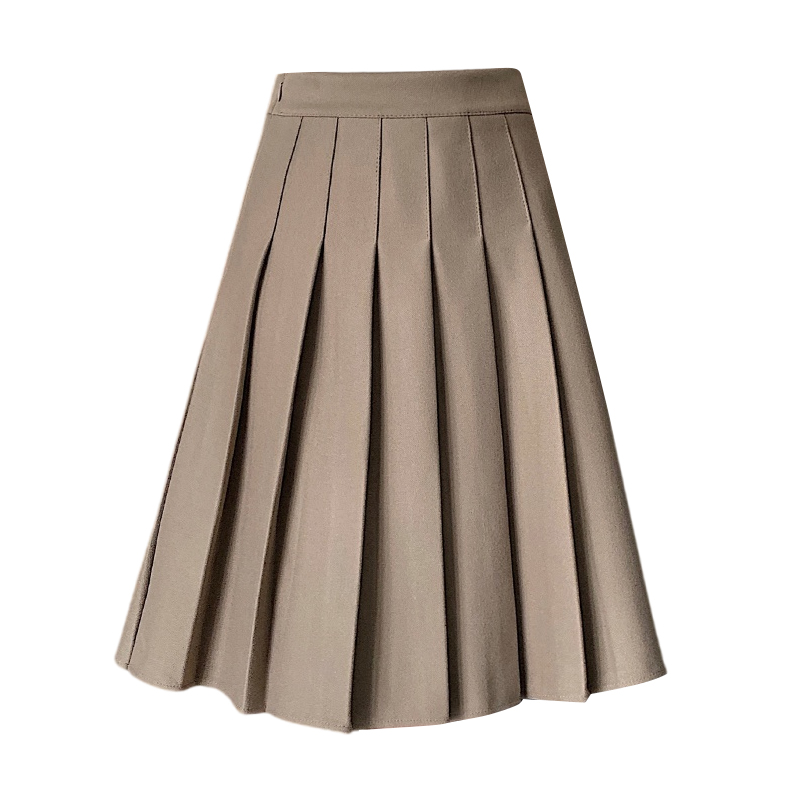 拉夏贝尔灰色呢子百褶半身裙女秋冬过膝中裙高腰显瘦a字百褶裙子M
