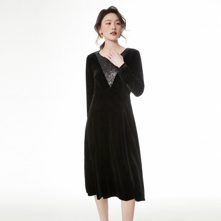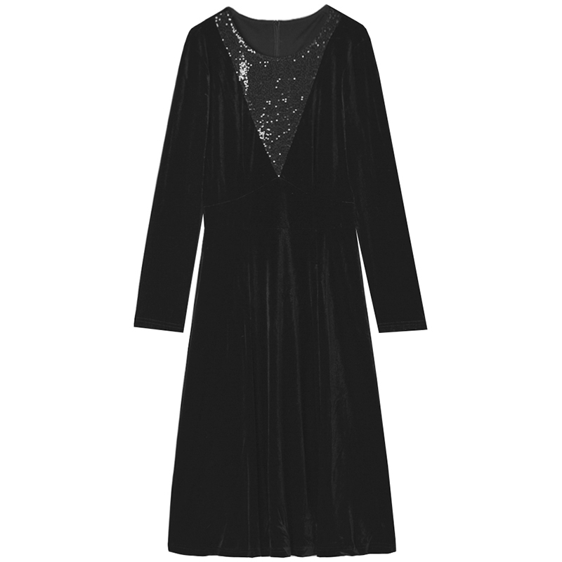 亮片中长裙长袖连衣裙