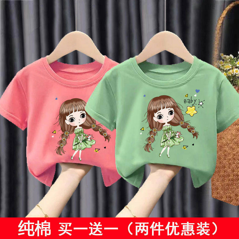 纯棉短袖T恤儿童衣服女童夏装2025新款宝宝洋气中大童上衣打底衫