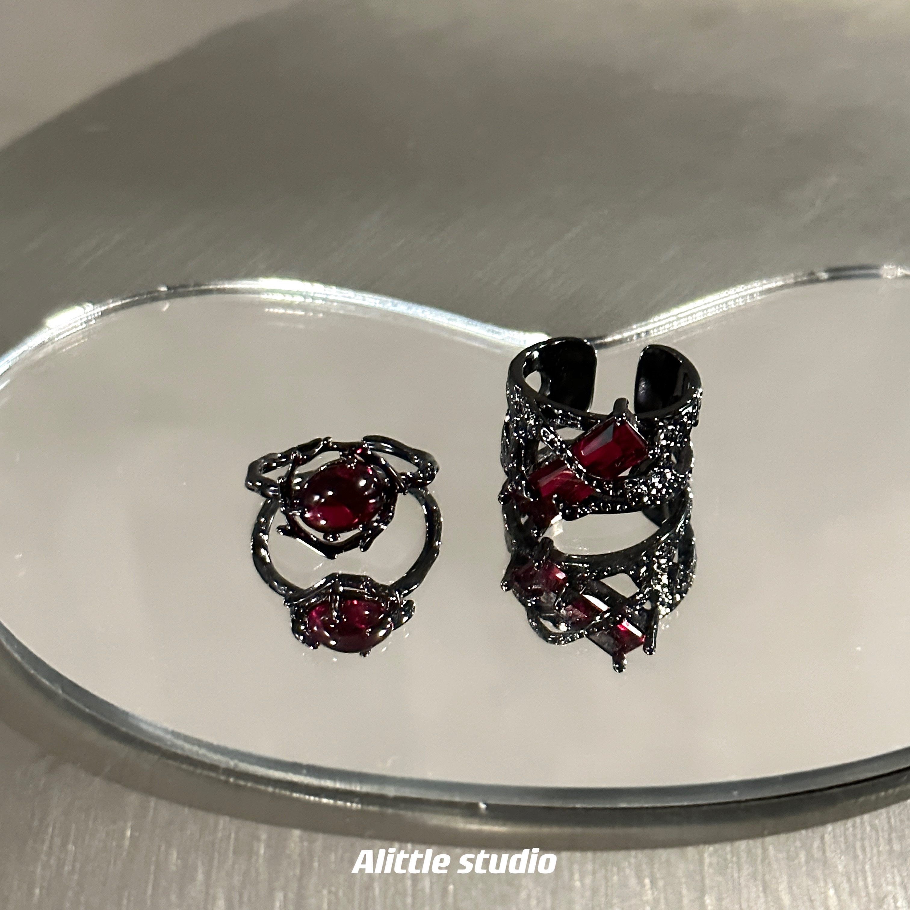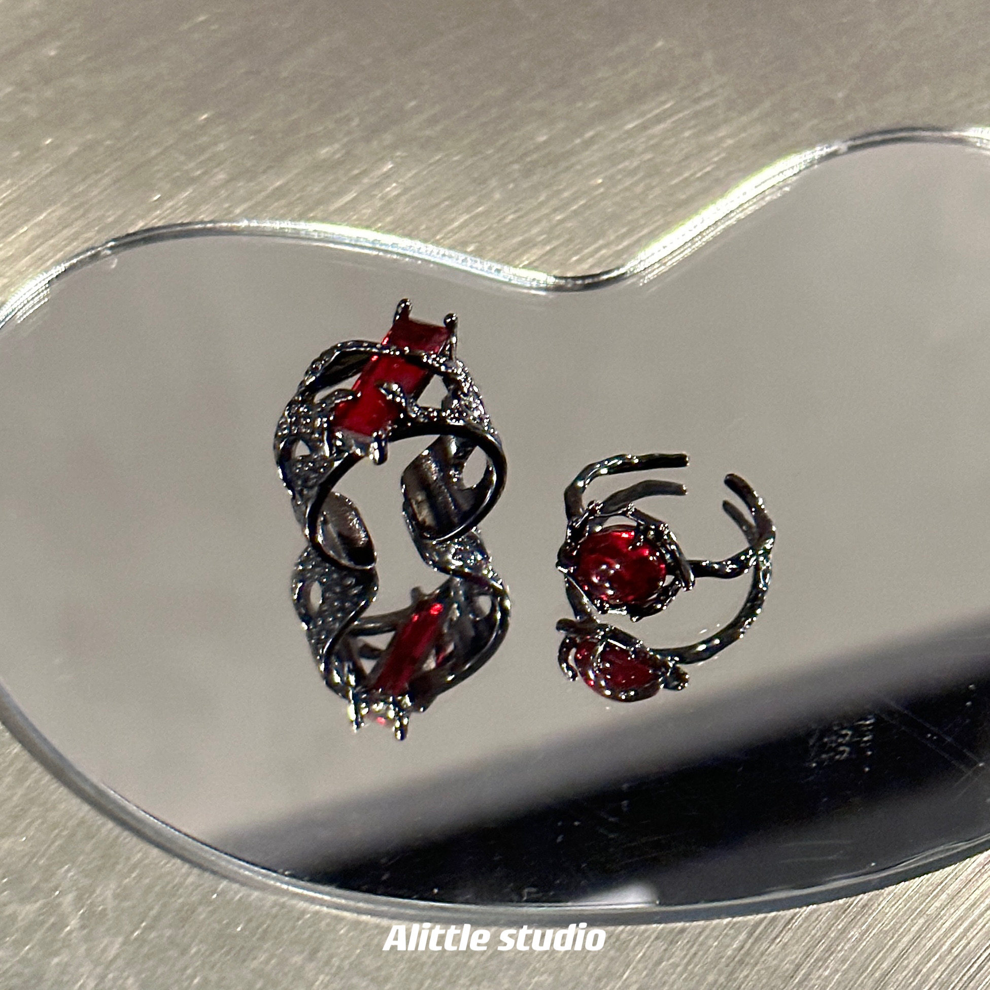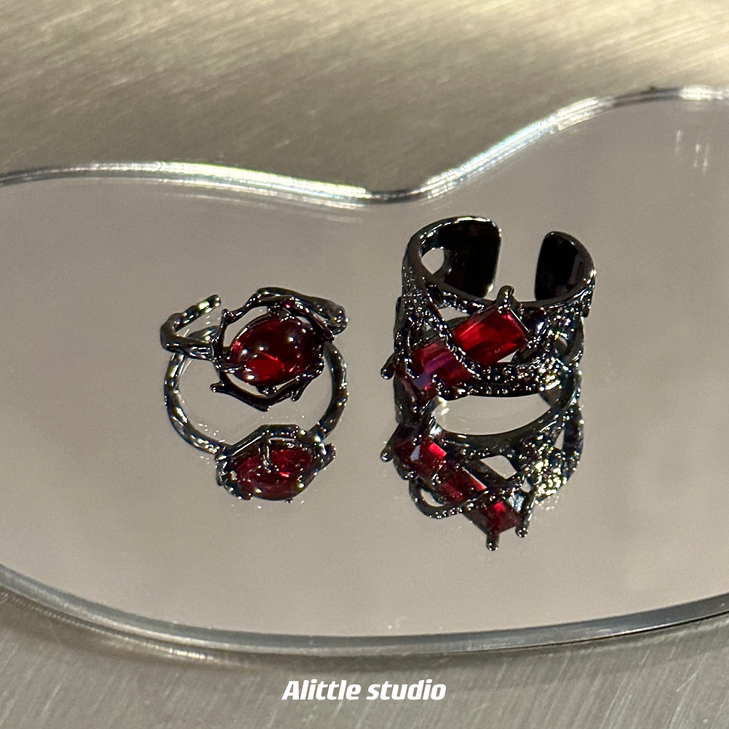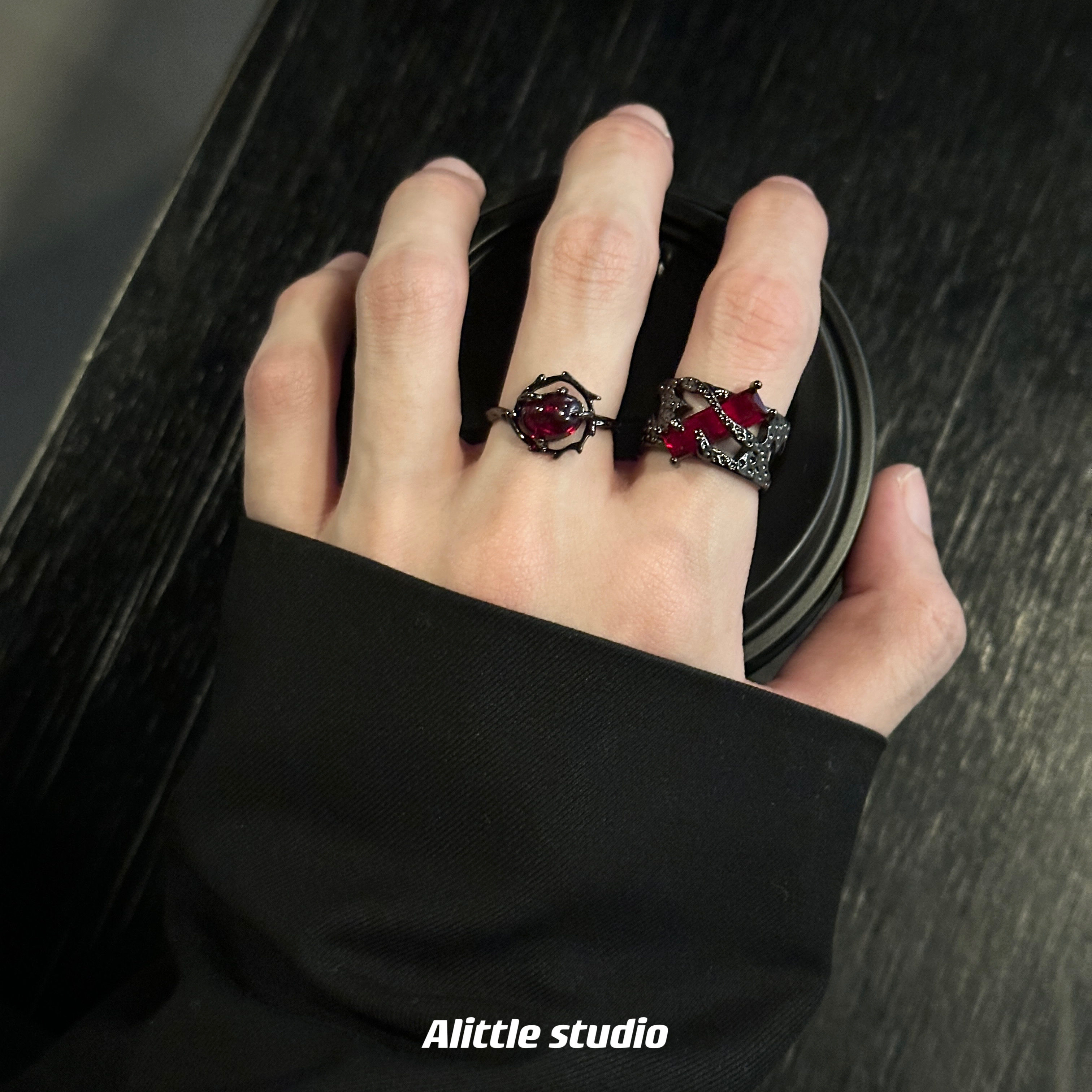 原创暗黑荆棘红月光戒指男女轻奢小众设计情侣对戒高级感开口指环