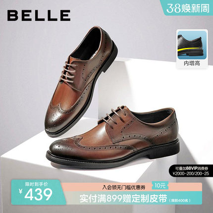 百丽男士款商务正装皮鞋男春秋季布洛克内增高新郎结婚鞋89183AM9