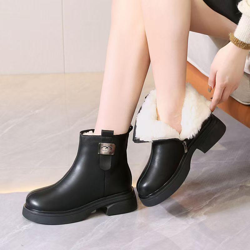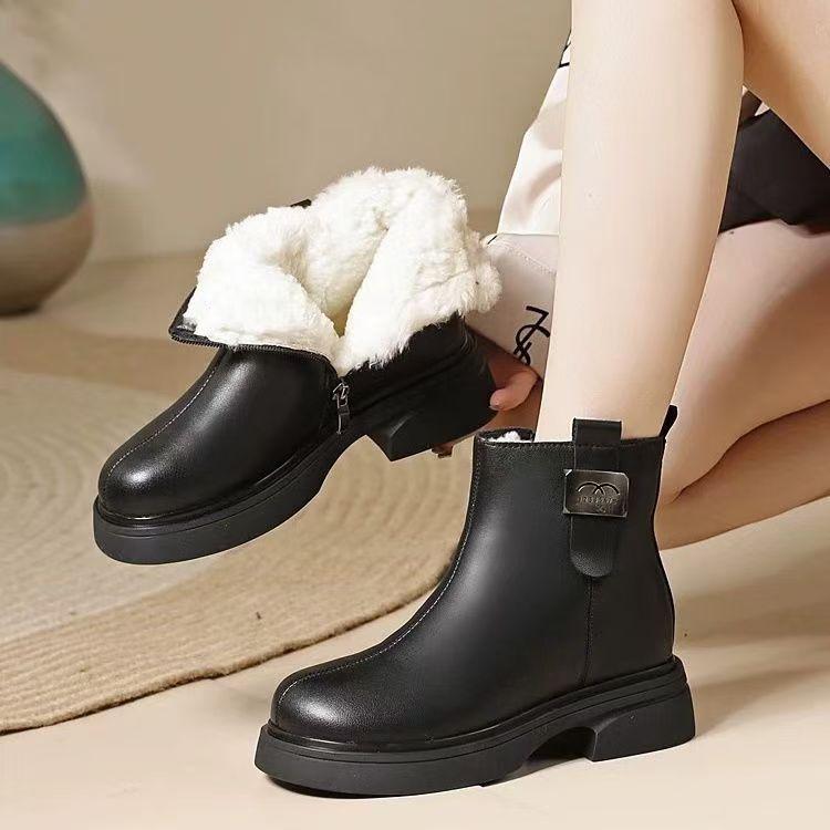 真皮厚底雪地靴女秋冬新款时尚中年妈妈皮毛一体棉靴防滑加厚短靴
