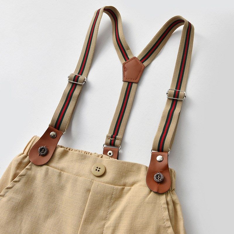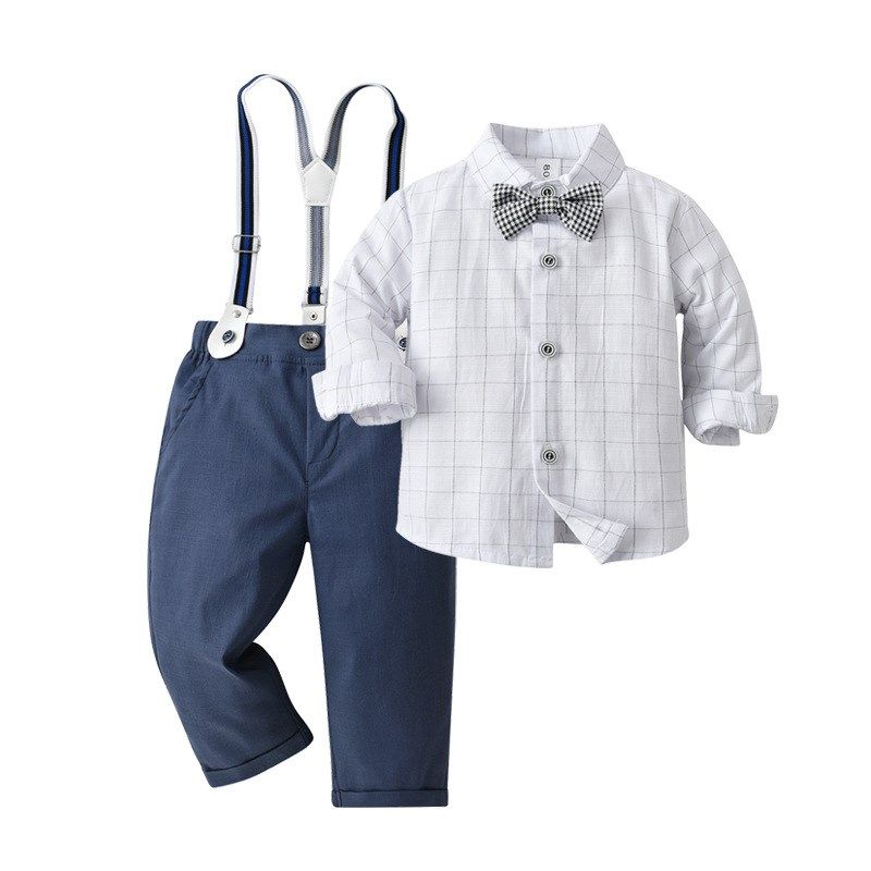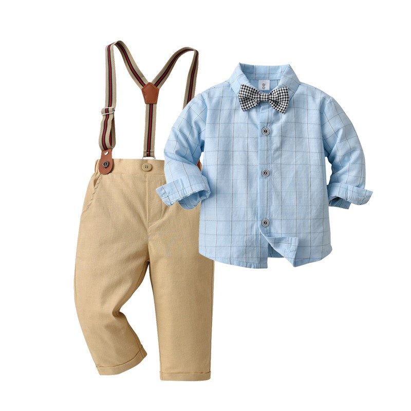 小男童春秋周岁生日礼服宝宝花童婚礼宴会正装长袖衬衫背带裤套装