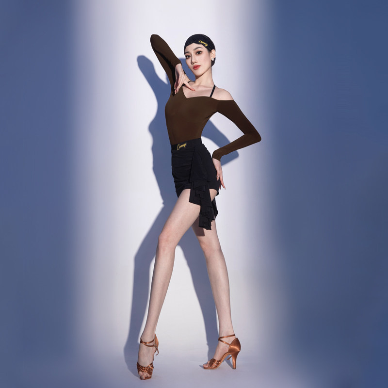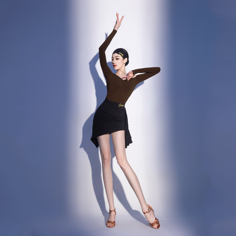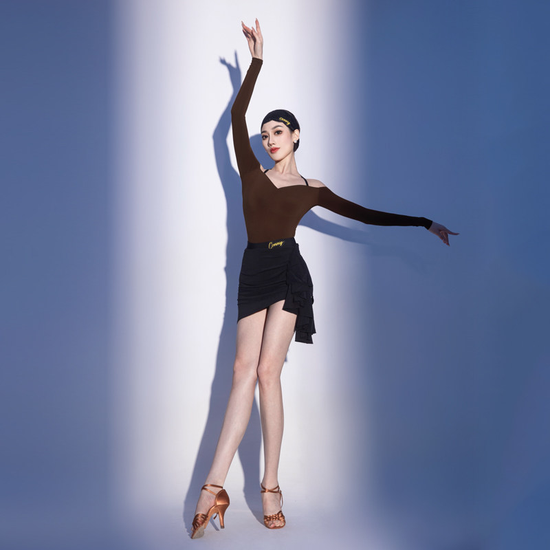 CONNY成人拉丁舞分体套装跳舞蹈上课训练功服女长袖上衣半身裙子