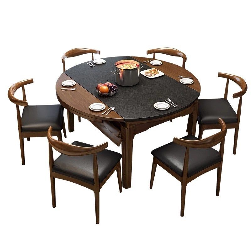 火烧石餐桌椅伸缩变圆形餐桌实木电磁炉饭桌家用小户型