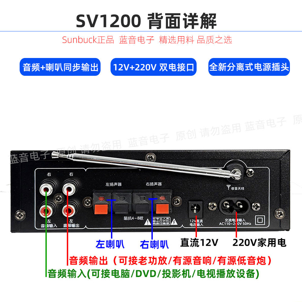 220V大功率蓝牙6.0 hifi功放机家用户外无损12V插卡U盘收音空放机