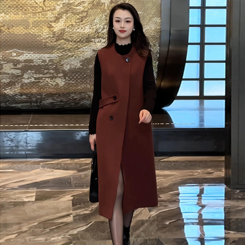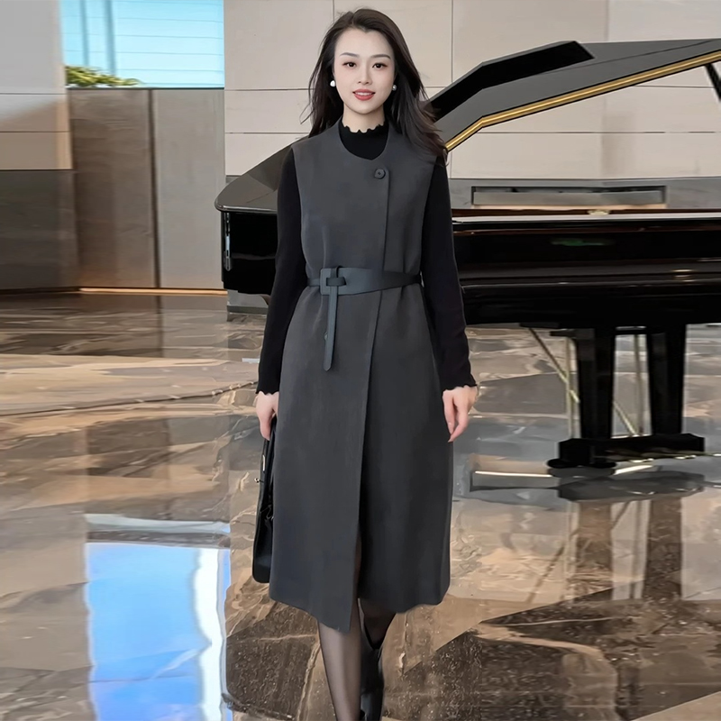 灰色毛呢背心连衣裙法式高级感超好看气质女神范长裙秋冬2025新款