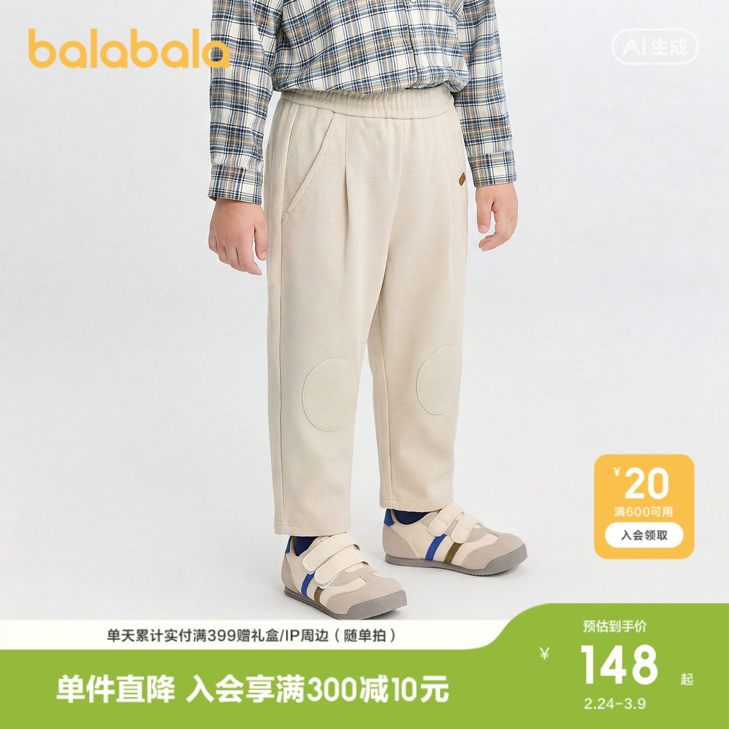 【商场同款】巴拉巴拉童装儿童长裤男童2026款春装软弹宽松萝卜裤