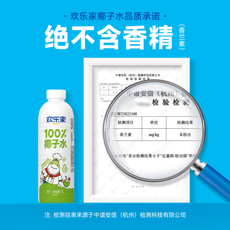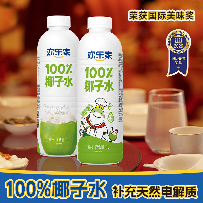 欢乐家 100%椰子水 1L大瓶装 椰汁椰青水饮料【日期到26年4月】