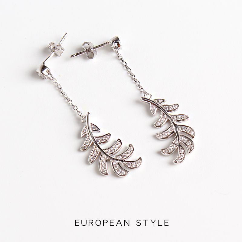 通体925纯银耳环女个性简约长款树叶蛇形耳坠玫瑰金色时尚耳饰VA