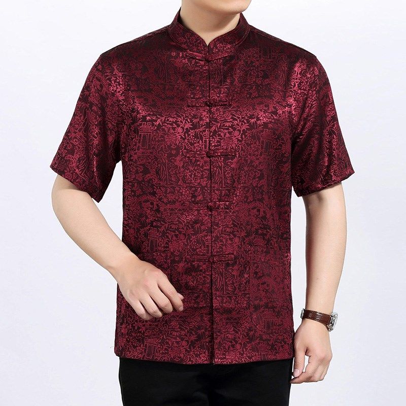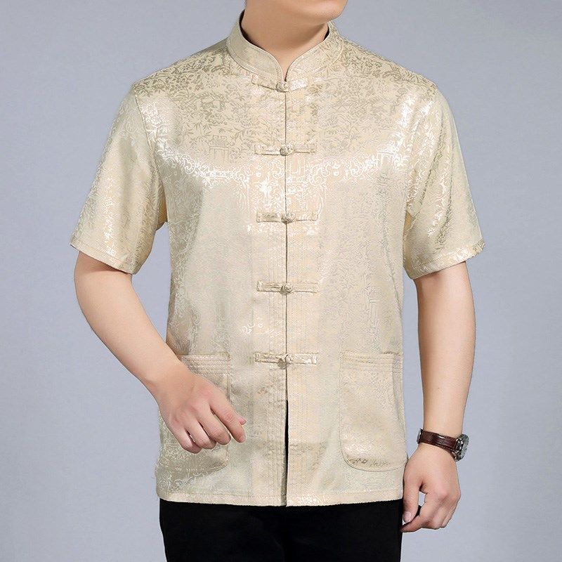 夏季中国风中老年男士唐装宽松短袖老人衬衫时尚加肥加大码爸爸装