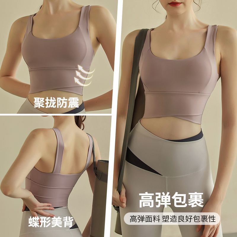 运动内衣女高强度跑步防震健身瑜伽服上衣一体美背心式文胸防下垂