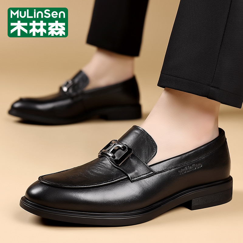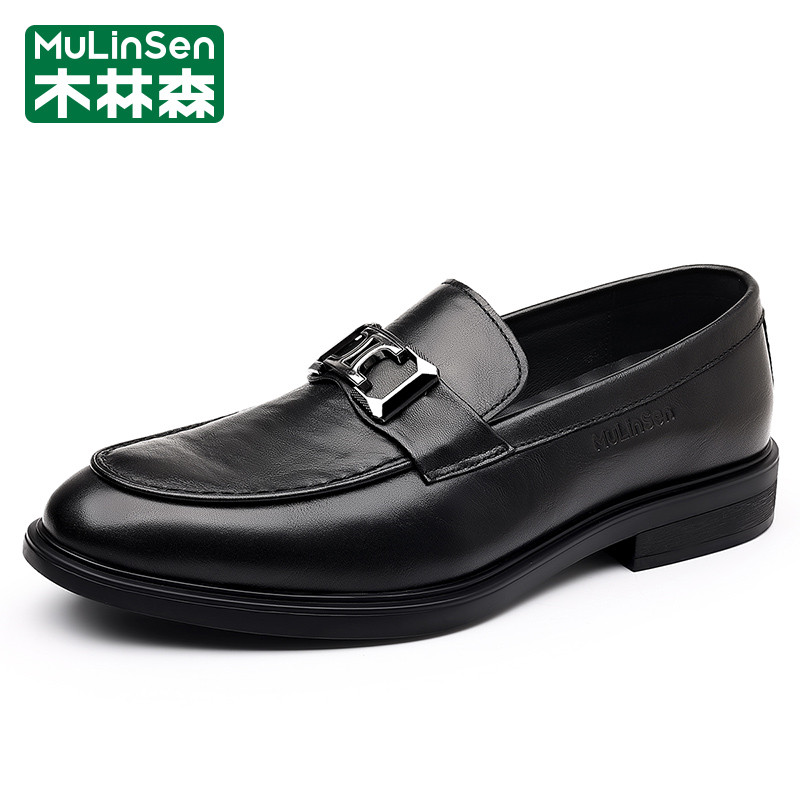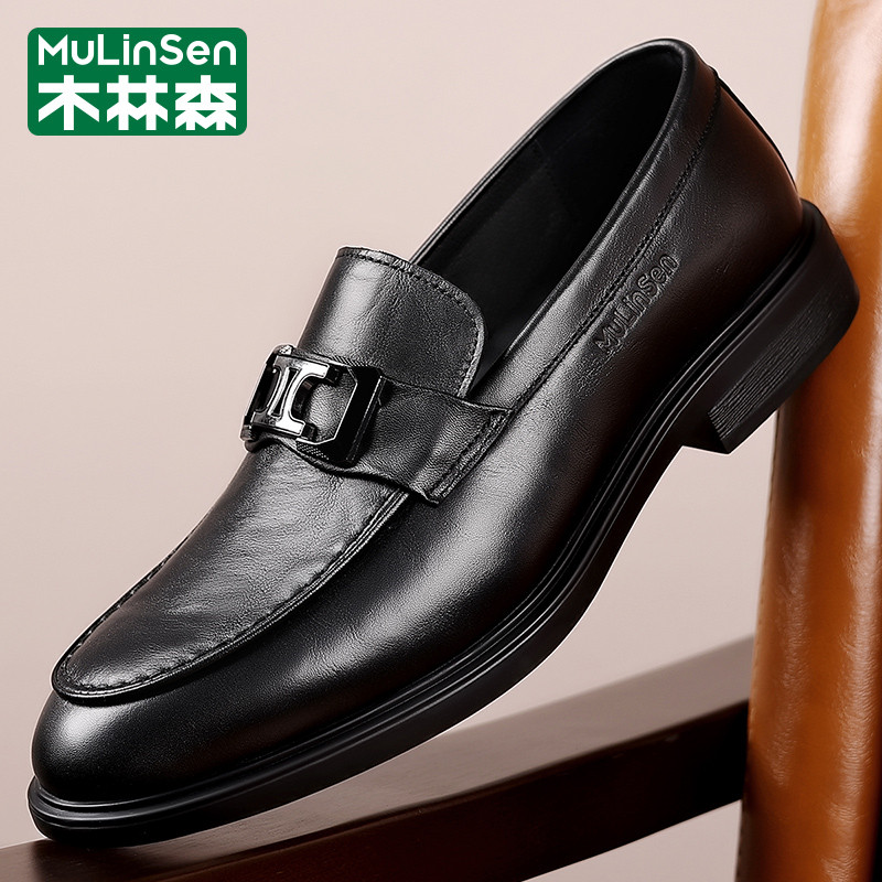 木林森皮鞋男款冬季商务休闲西装一脚蹬尖头爸爸结婚新郎马丁潮鞋