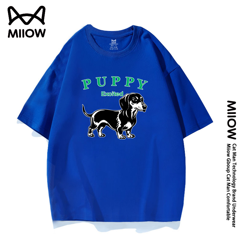 MIIOW猫人男童联名美式潮牌腊肠狗印花纯棉短袖T恤学生夏季半袖
