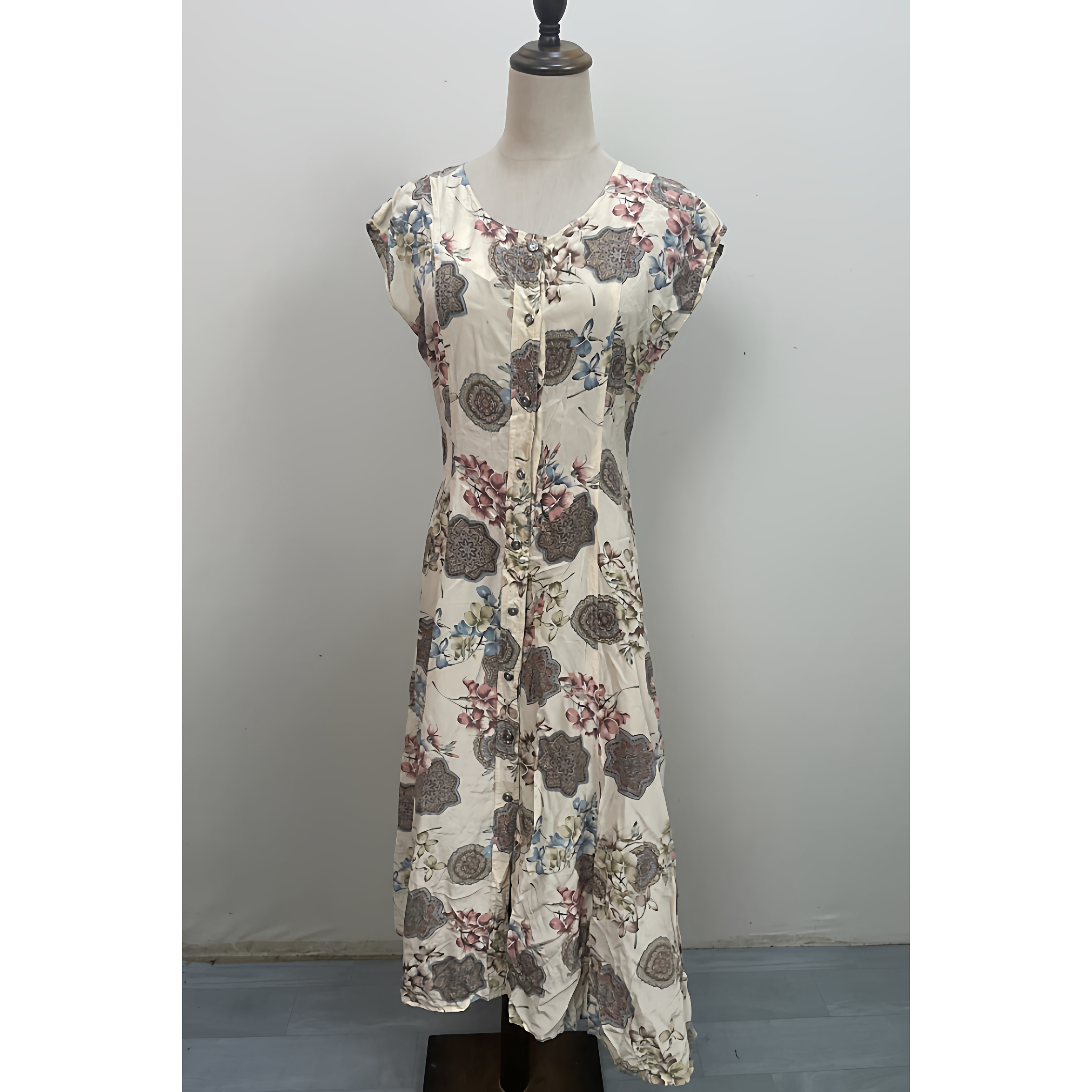 119古着vintage 桑蚕丝夏季女士轻盈柔软优雅碎花气质真丝连衣裙