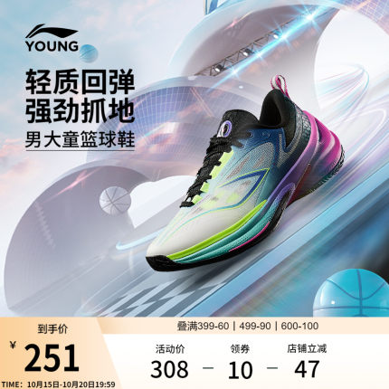李宁童鞋篮球鞋男大童2025新款回弹支撑稳定透气清凉反光低帮童鞋