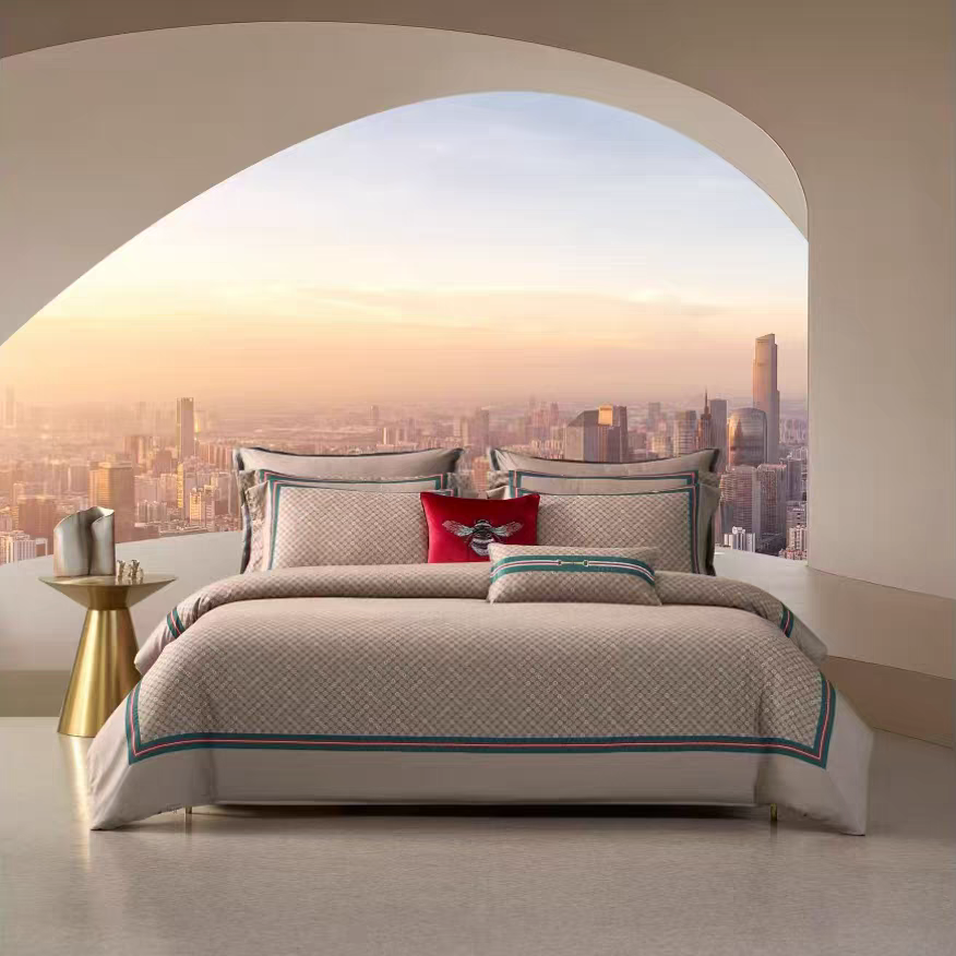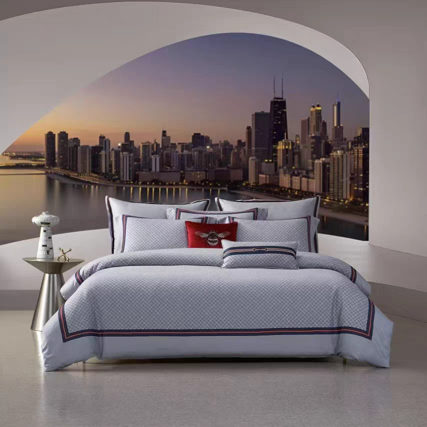 梦洁长绒棉磨毛数码印花四件套小香风格子保暖被罩床单古驰奥先生