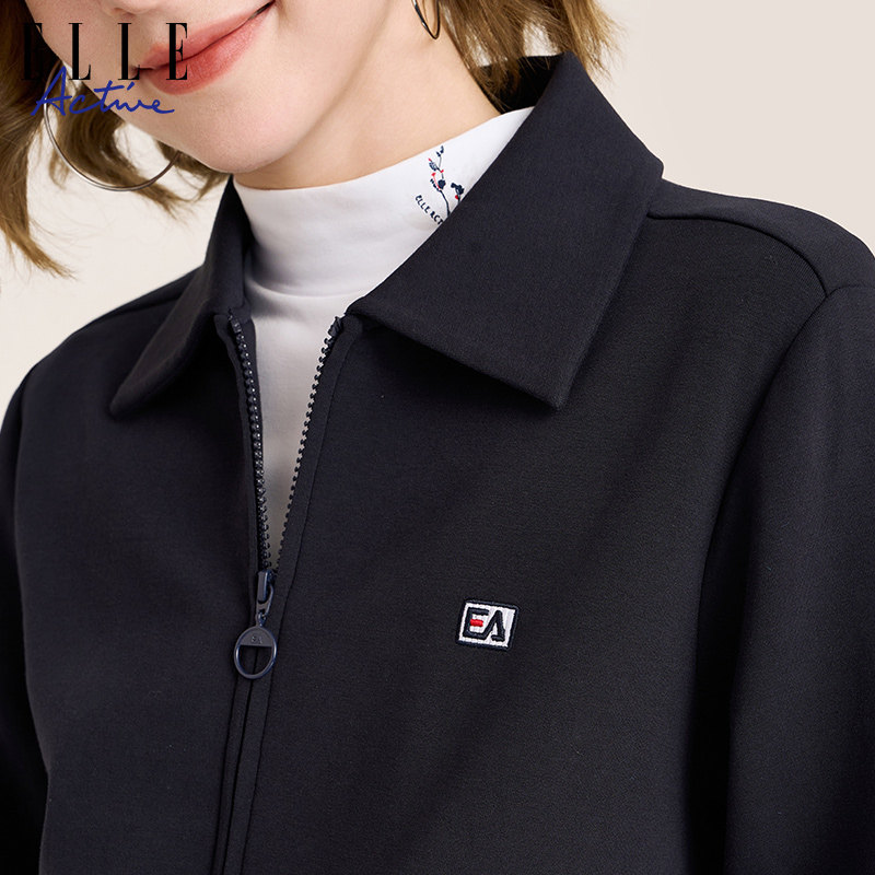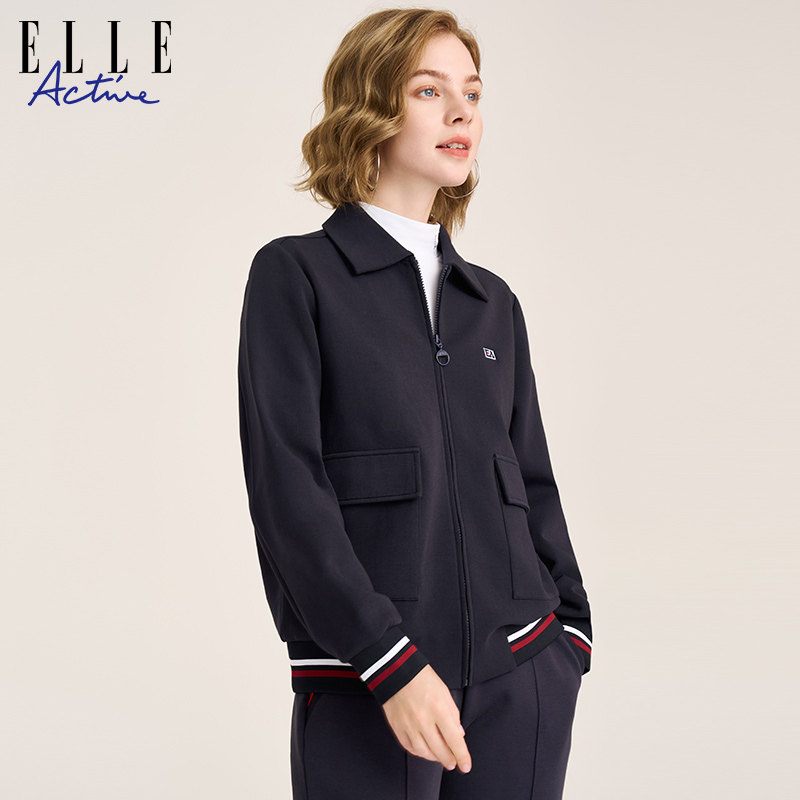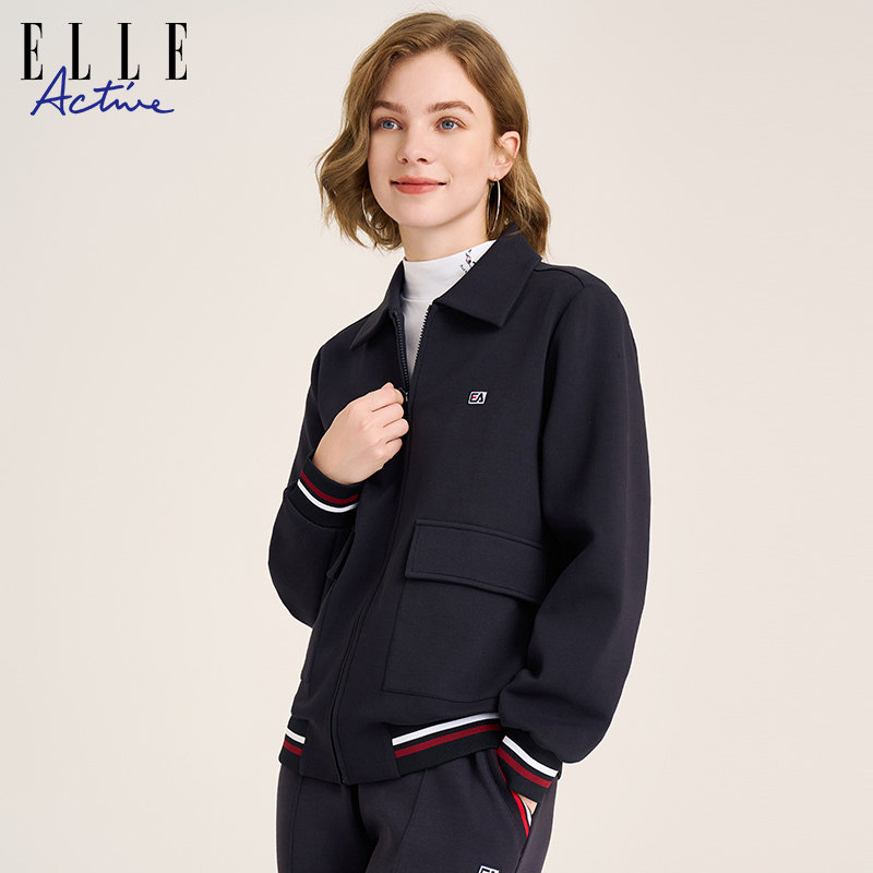 ELLE Active2026春秋翻领卫衣拉链开衫棒球服夹克外套女时尚洋气