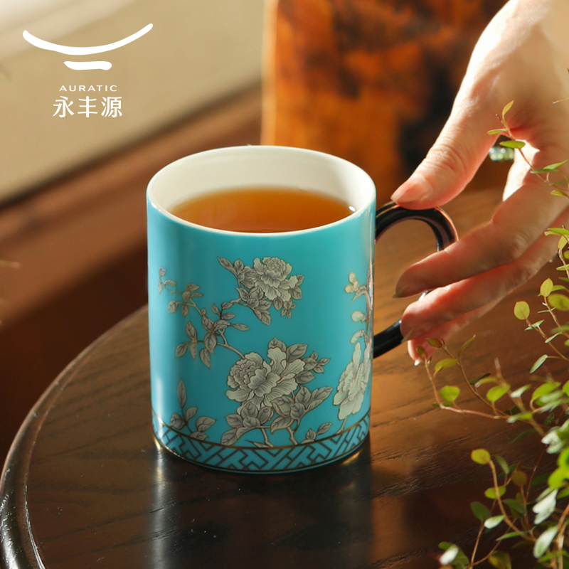 【高档礼物】永丰源 水墨牡丹马克杯 陶瓷水杯喝水杯子高颜值