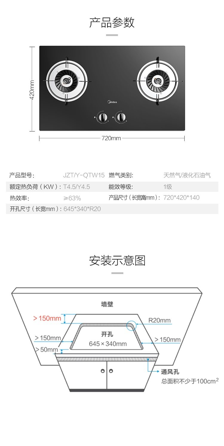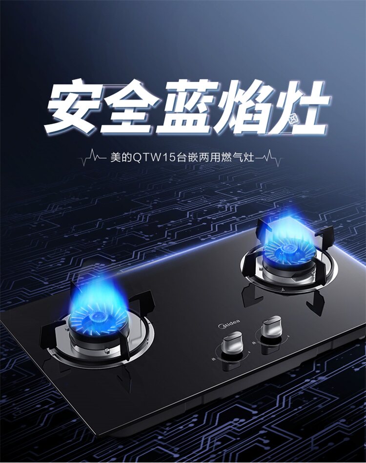 美的燃气灶JZT-QTW15家用4.5KW大火力嵌入式双灶燃气灶