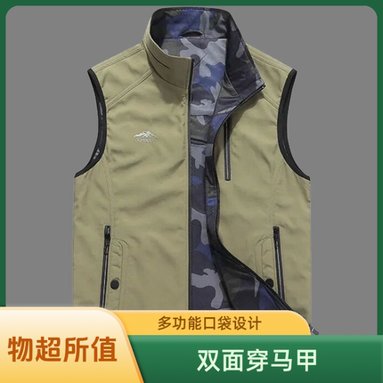 霸豹利双面穿马甲男外套秋冬导演休闲钓鱼摄影背心男马夹男装外套