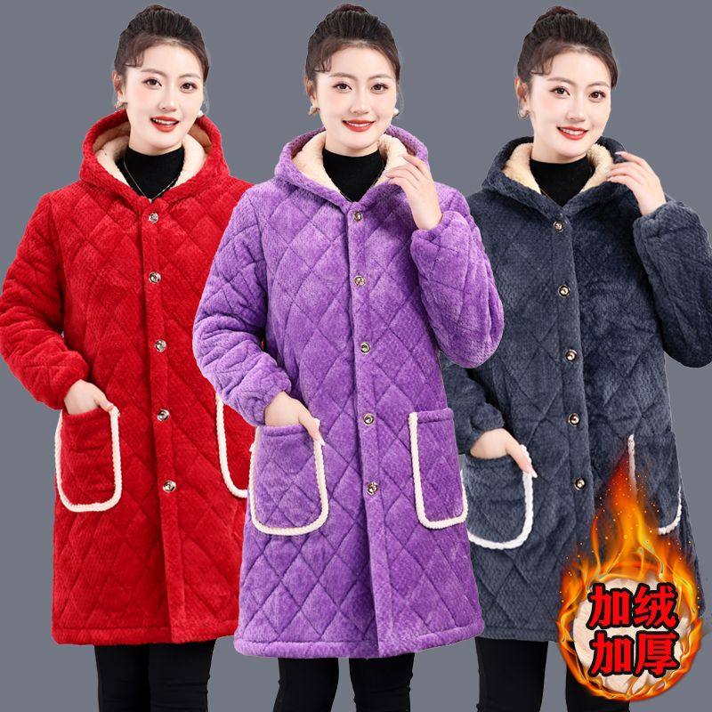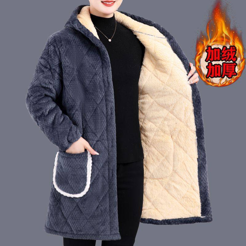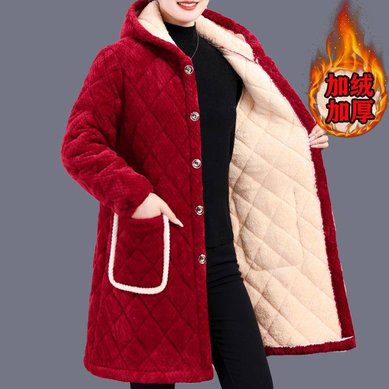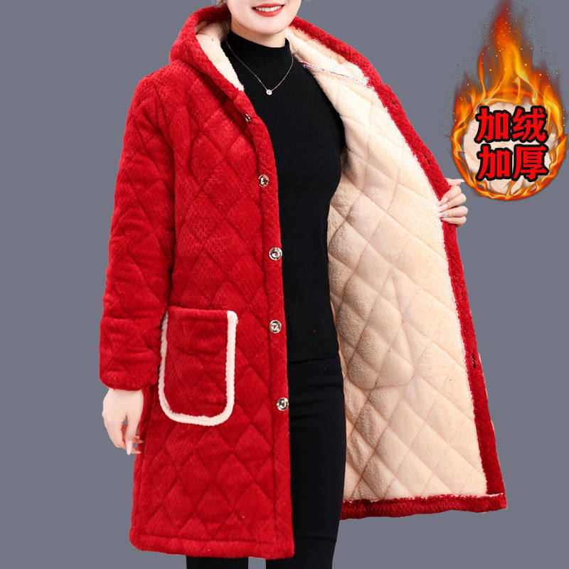 中老年女冬季中长款加绒罩衣大码棉衣妈妈装加厚棉服洋气棉袄外套