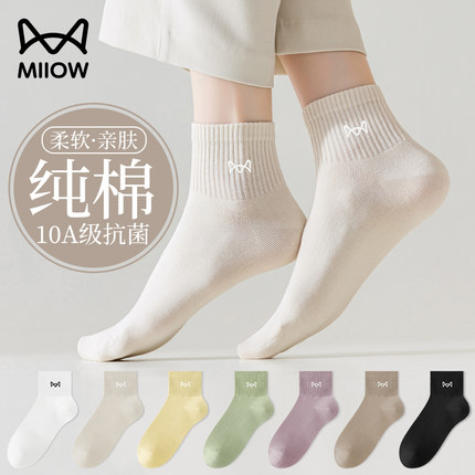 猫人袜子女款纯棉防臭抗菌防脚气秋季中筒袜2025新款春秋女袜短袜