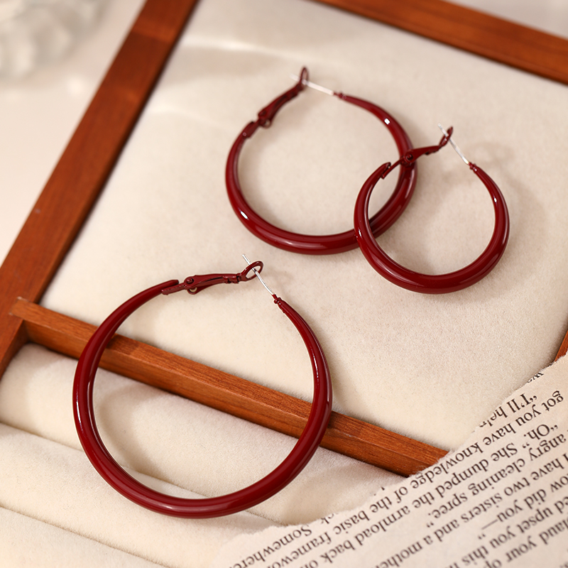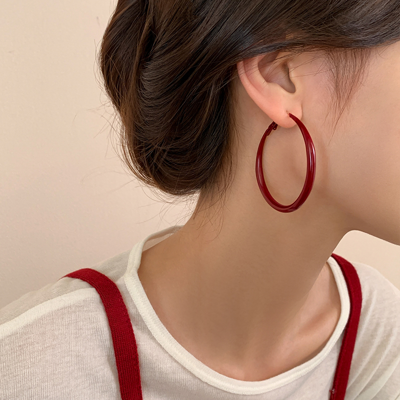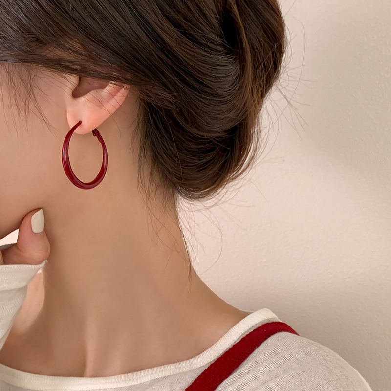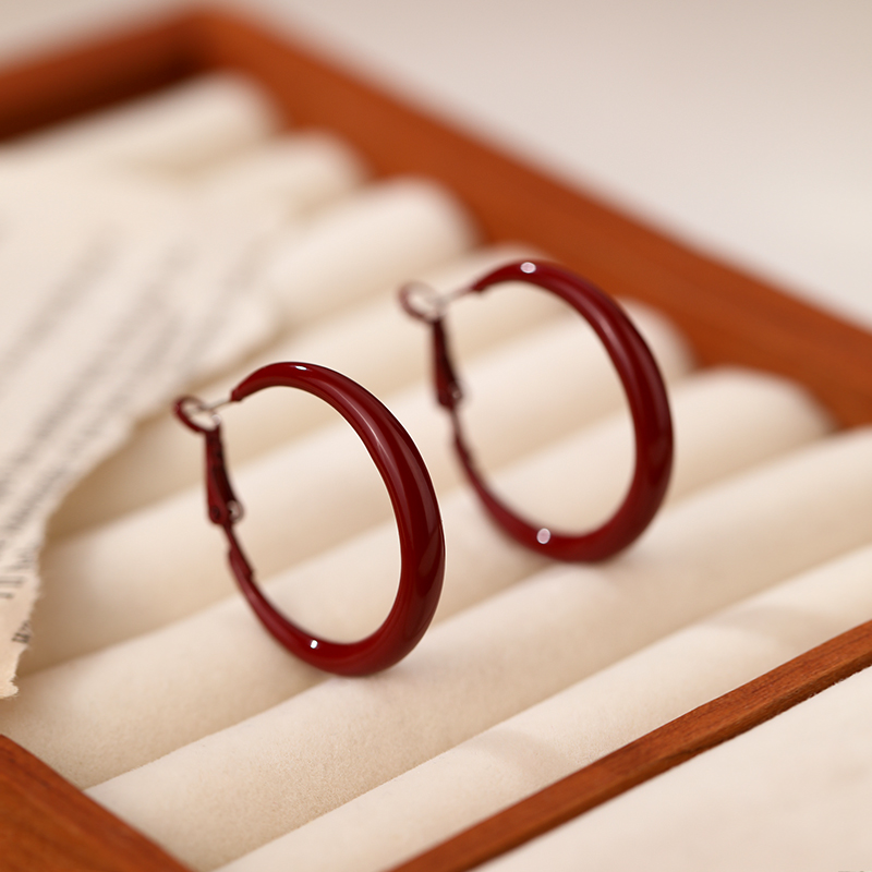 【巷南】999银安可拉红素圈耳环轻奢新年本命年耳钉高级感女耳饰