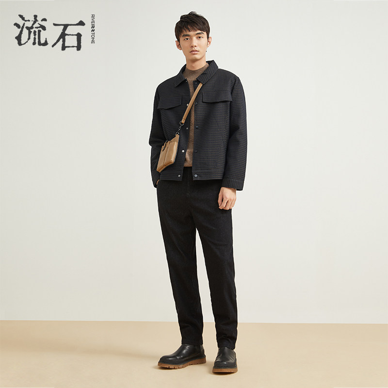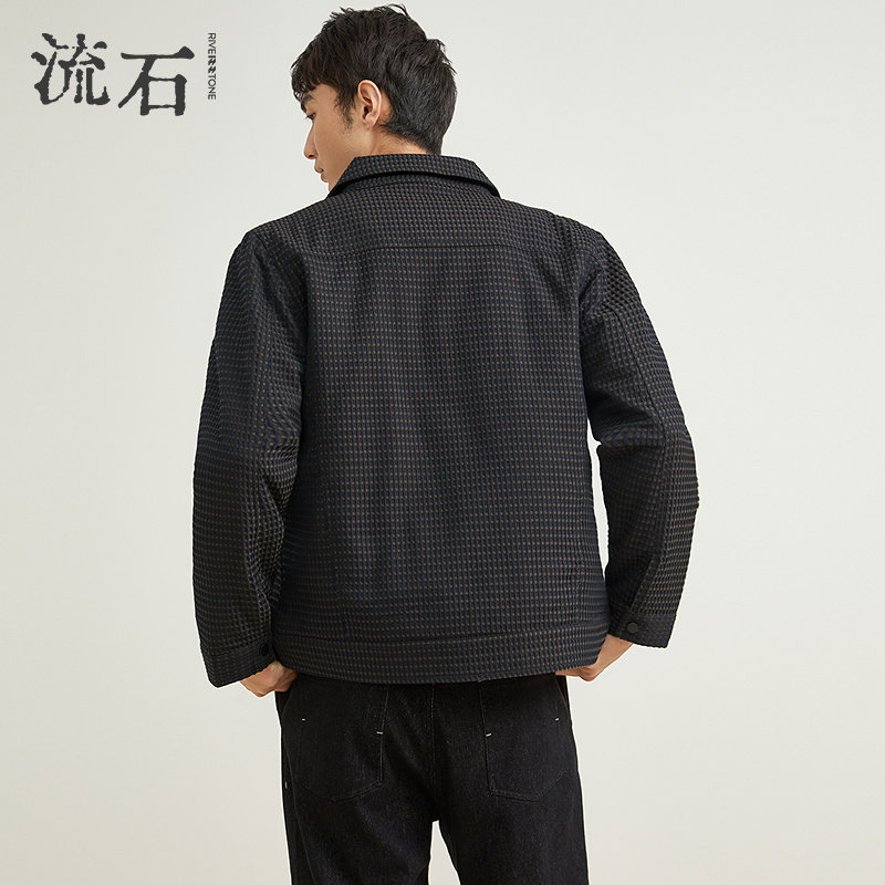 流石男装高端时尚格子翻领棉衣潮