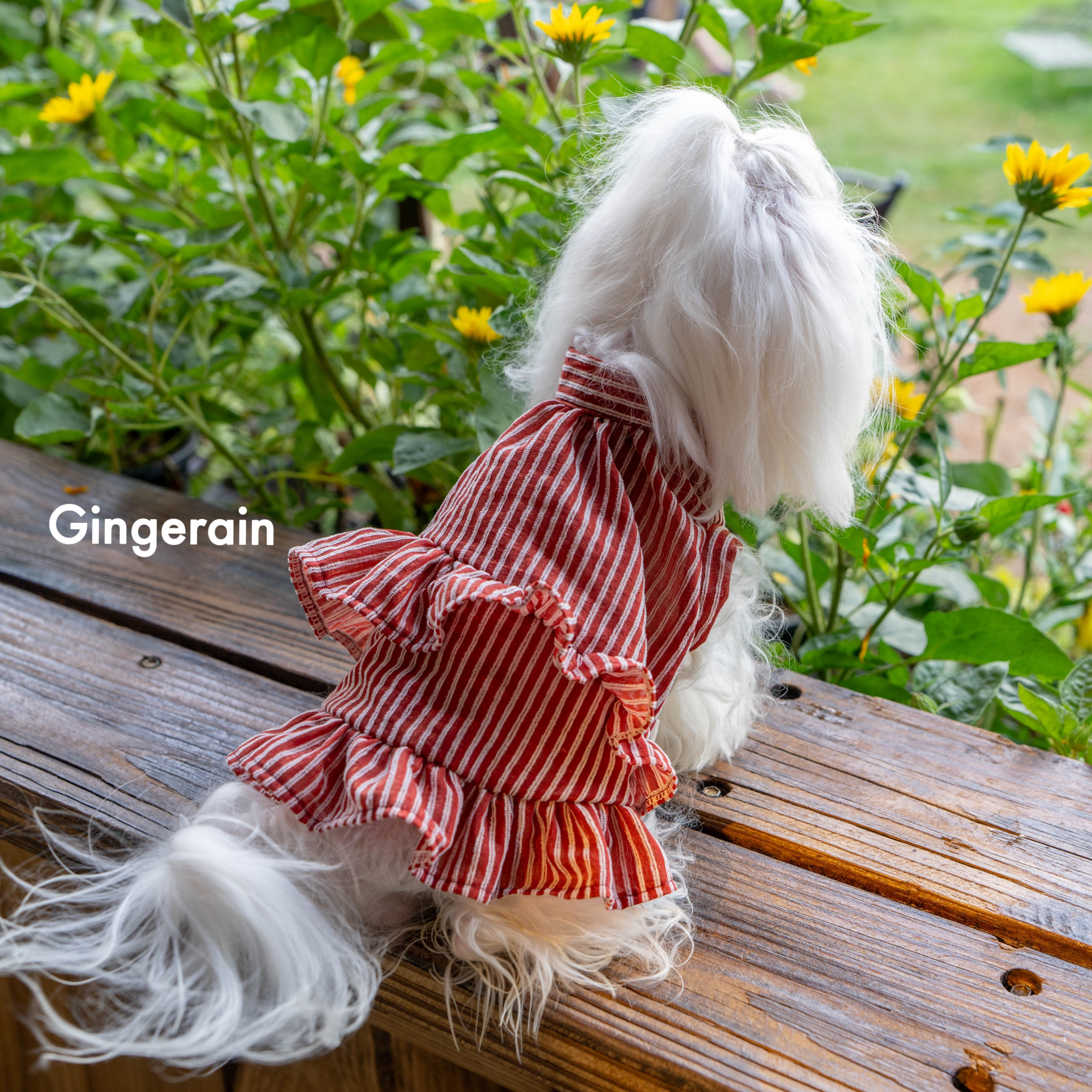 GINGERAIN 法式荷叶边衬衫马尔济斯衣服比熊约克夏飘逸初恋背心裙