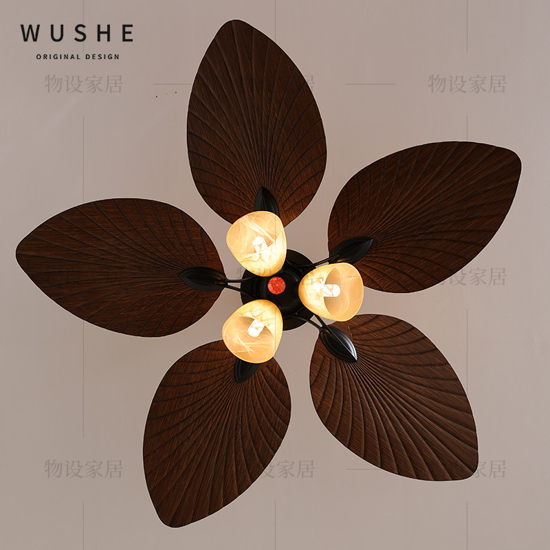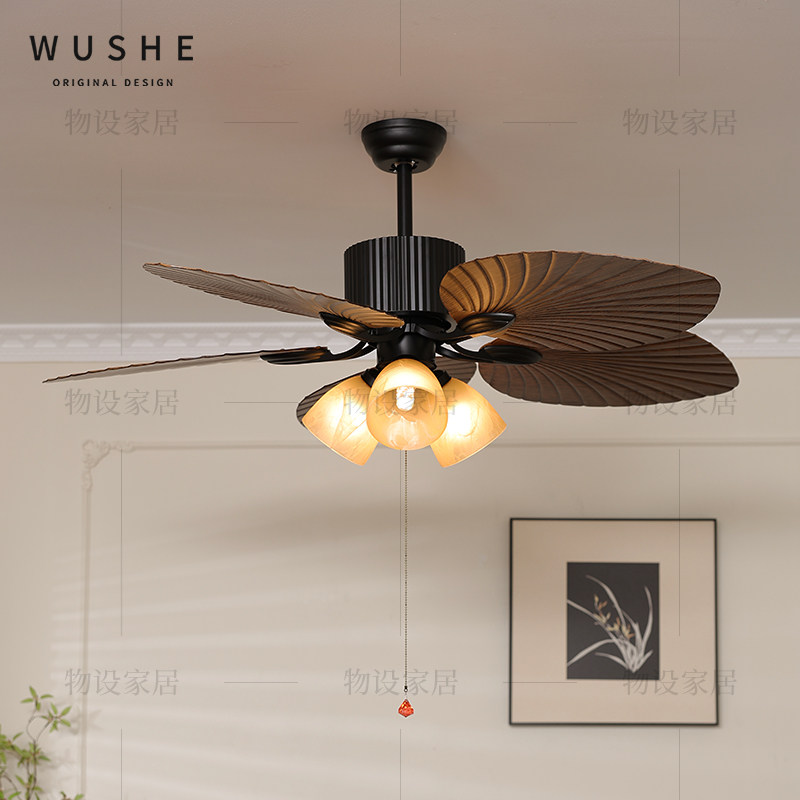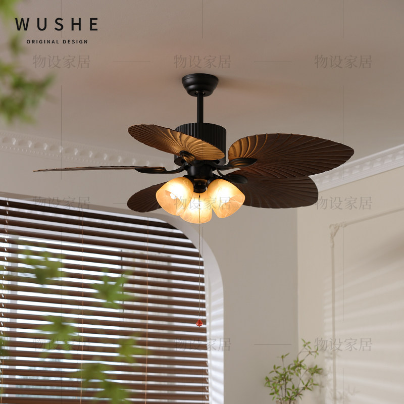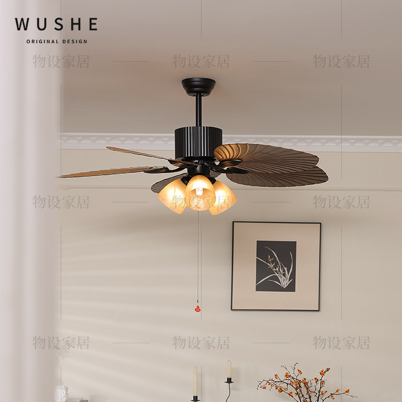餐厅风扇灯法式中古风吊扇灯美式复古南洋风卧室灯客厅静音电扇灯